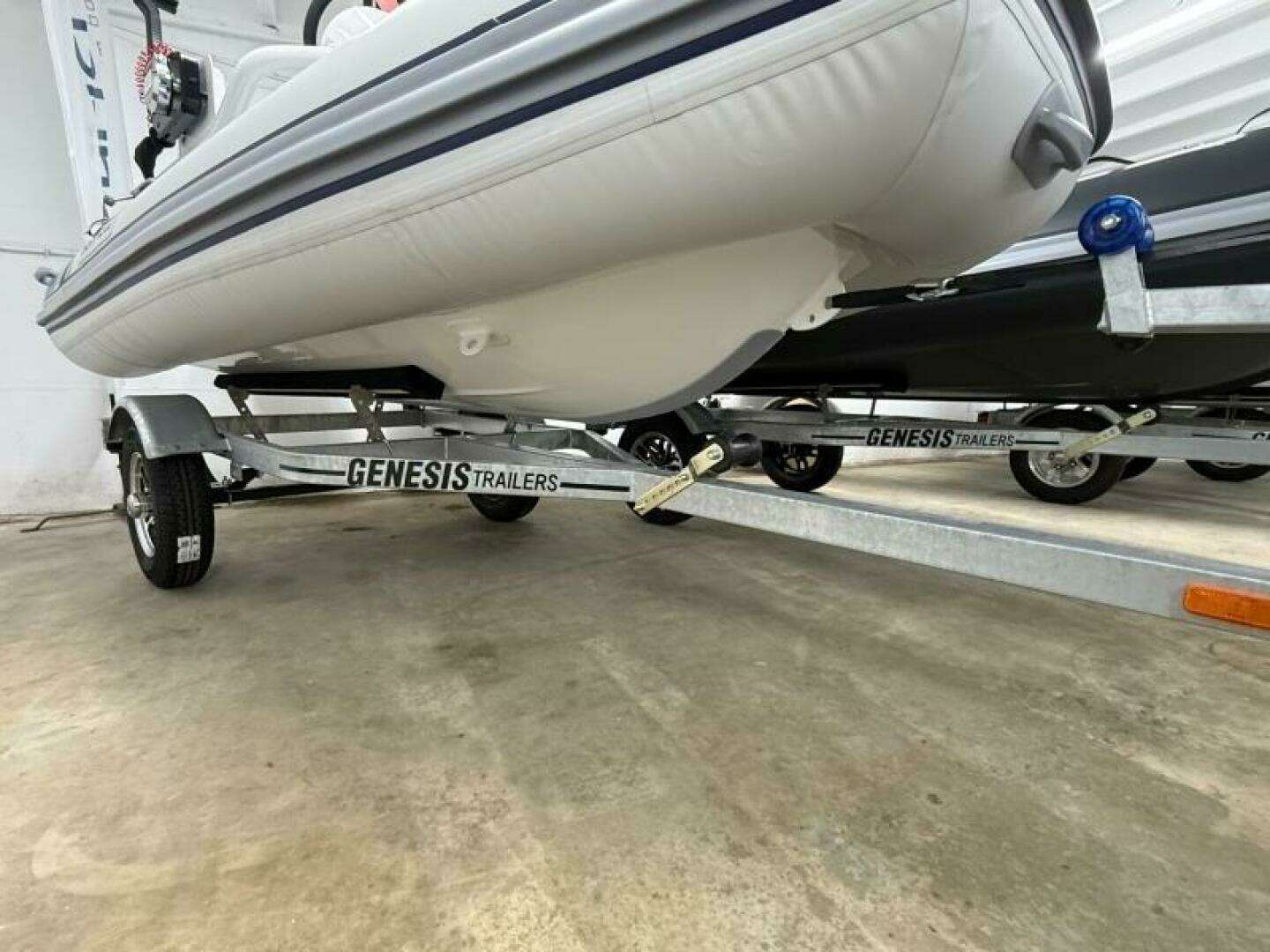 Brand New 2024 Model. Durable Aluminum Hull, Lightweight, and makes a great Tender. Includes New Genesis Galvanized Trailer.