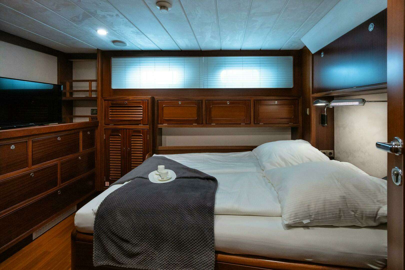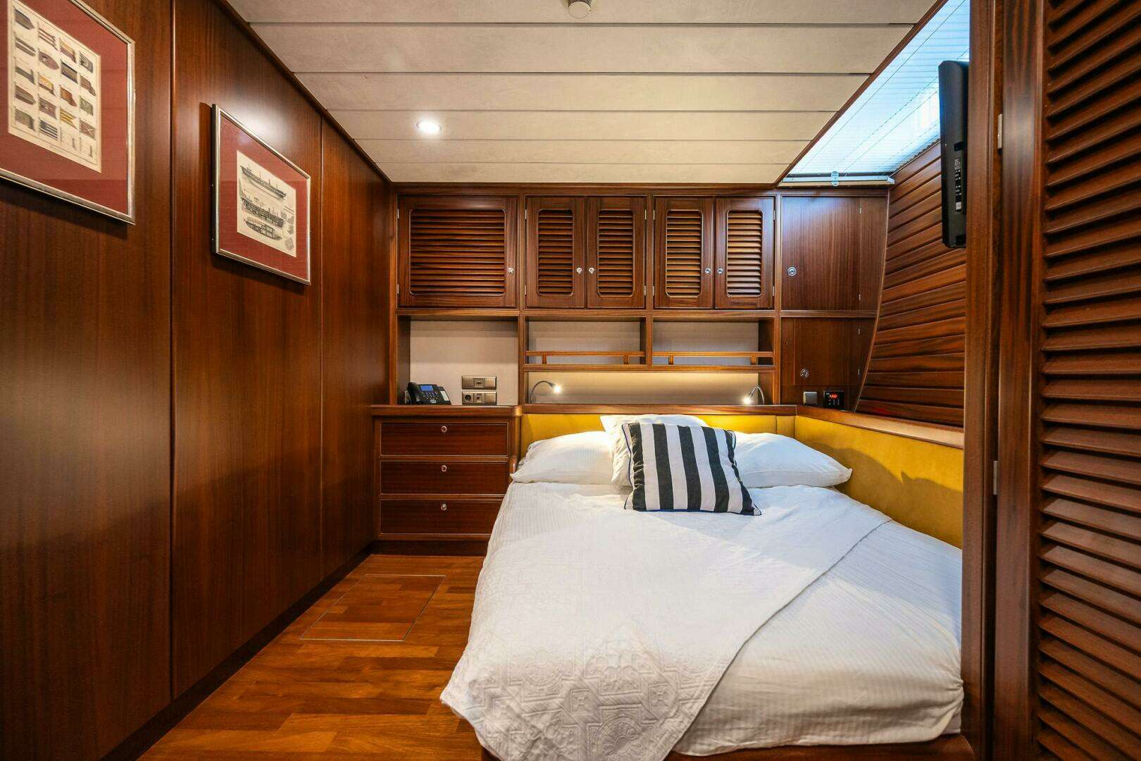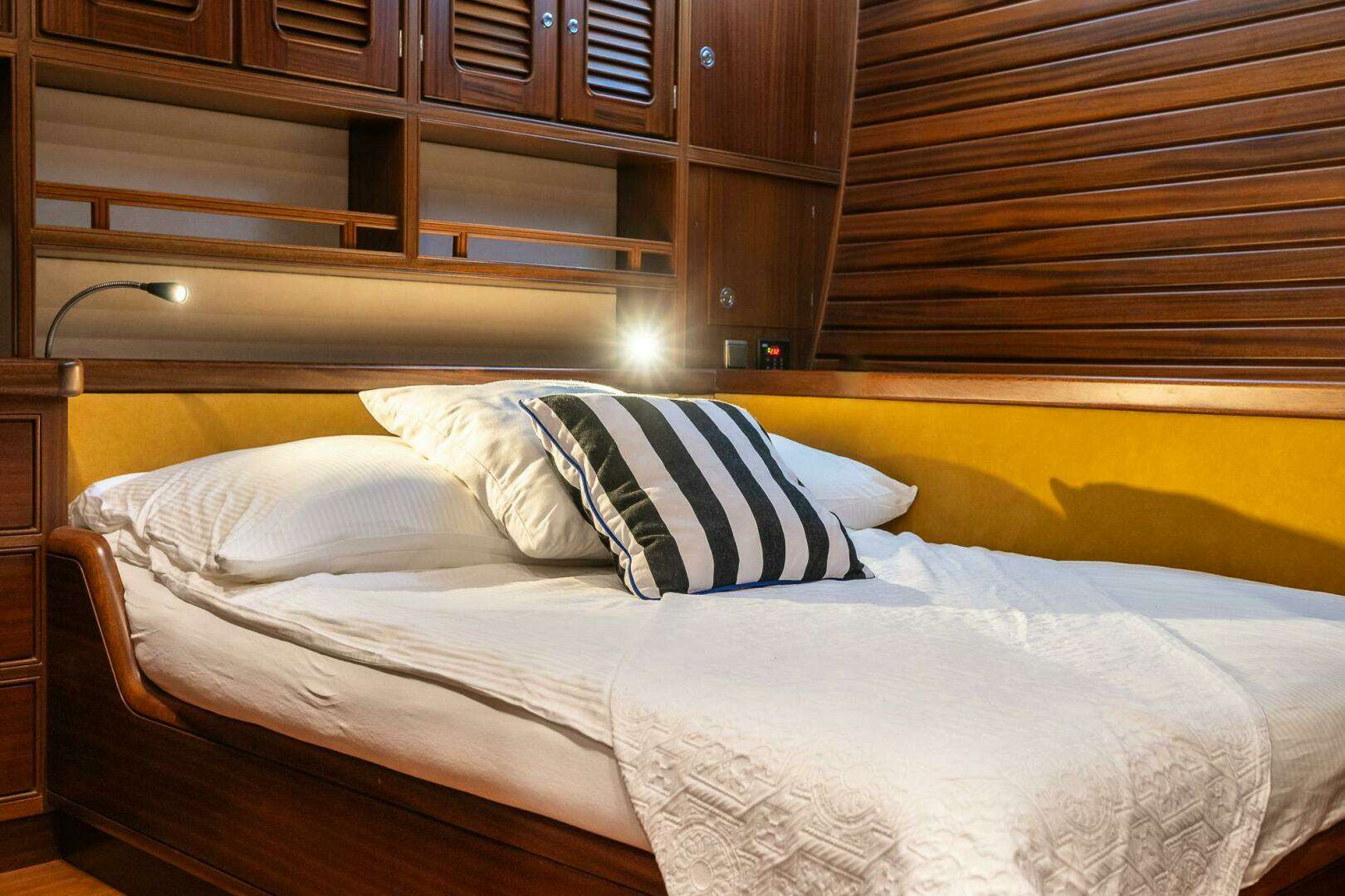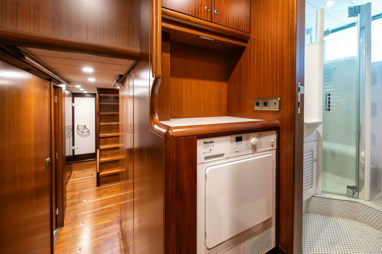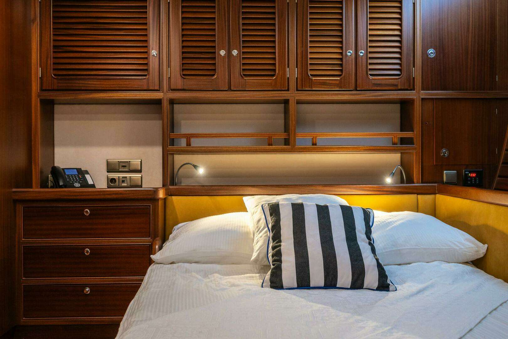 INTERIOR Separate owners department with large double bed and two ensuite bathrooms. Three double guest cabins, all with ensuite bathrooms. One crew cabinWood interior: Mercado Washing machine Siemens IQ 500 MASTER CABIN Big Kingsize bed, wardropes, TV, Control screen