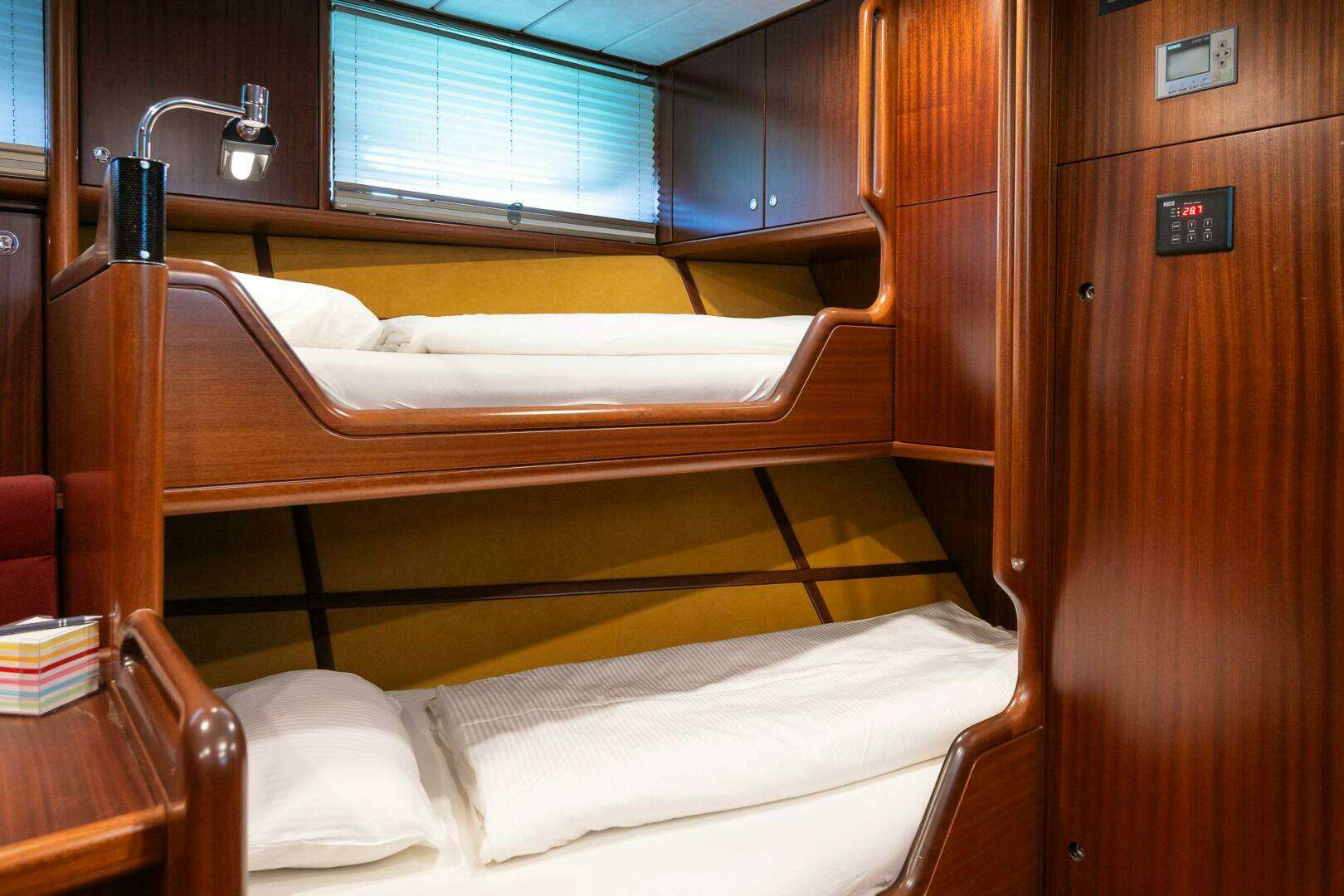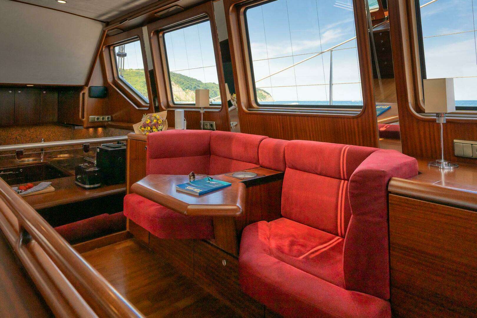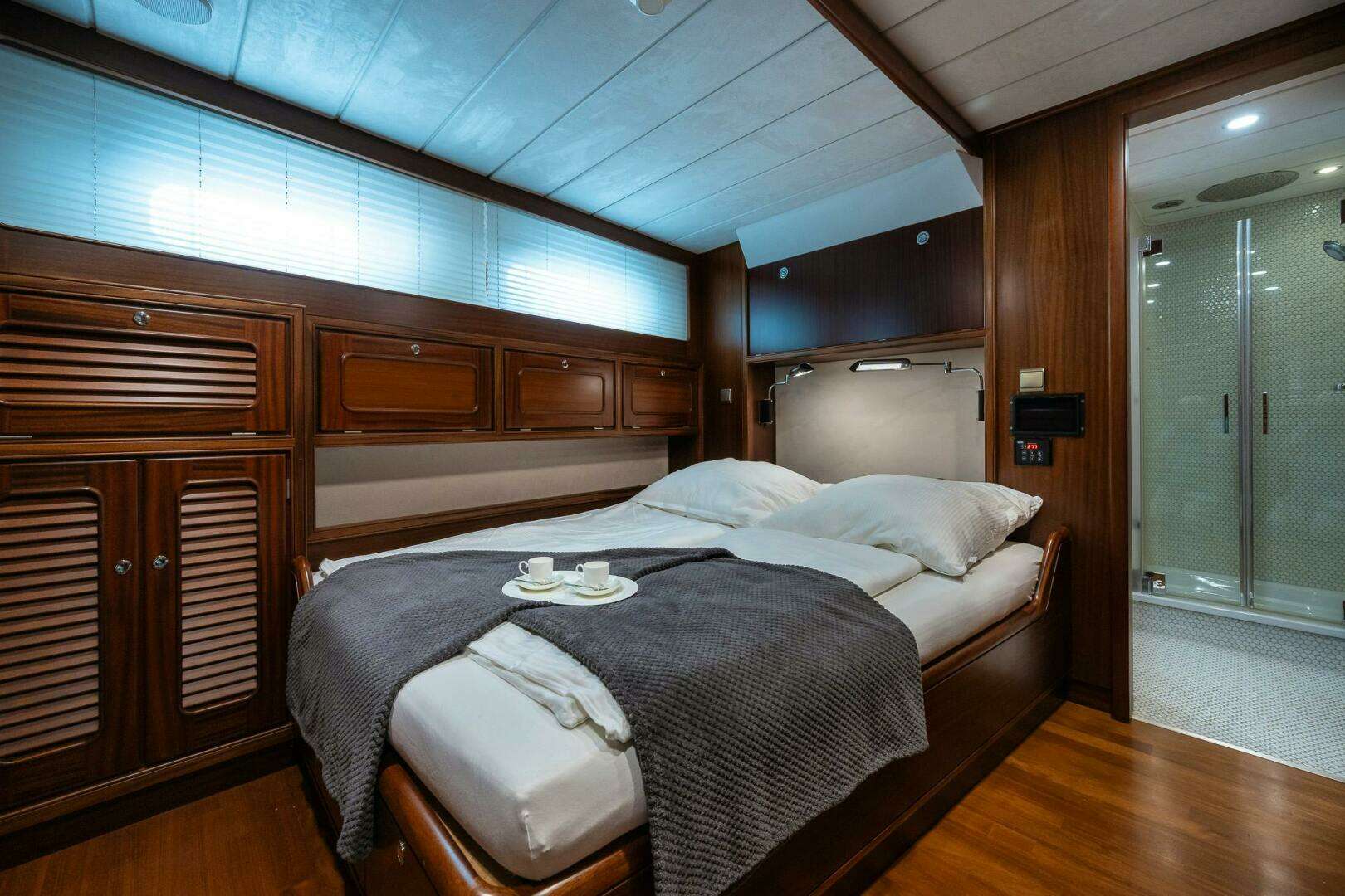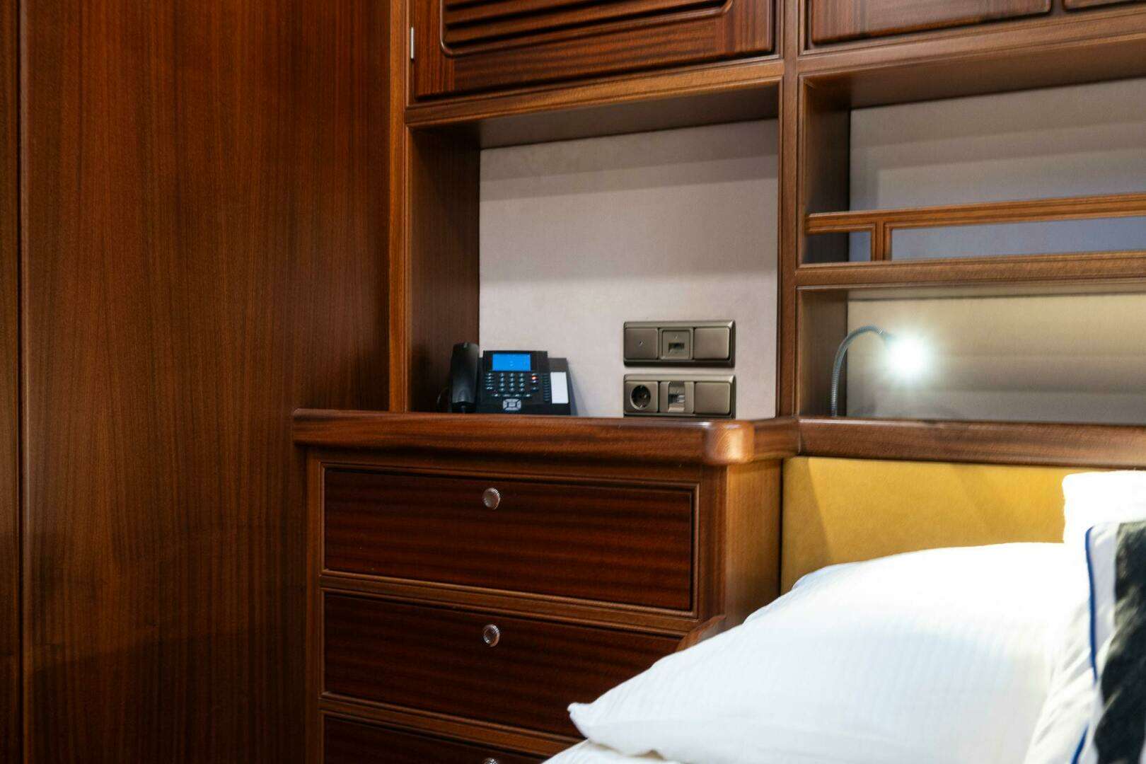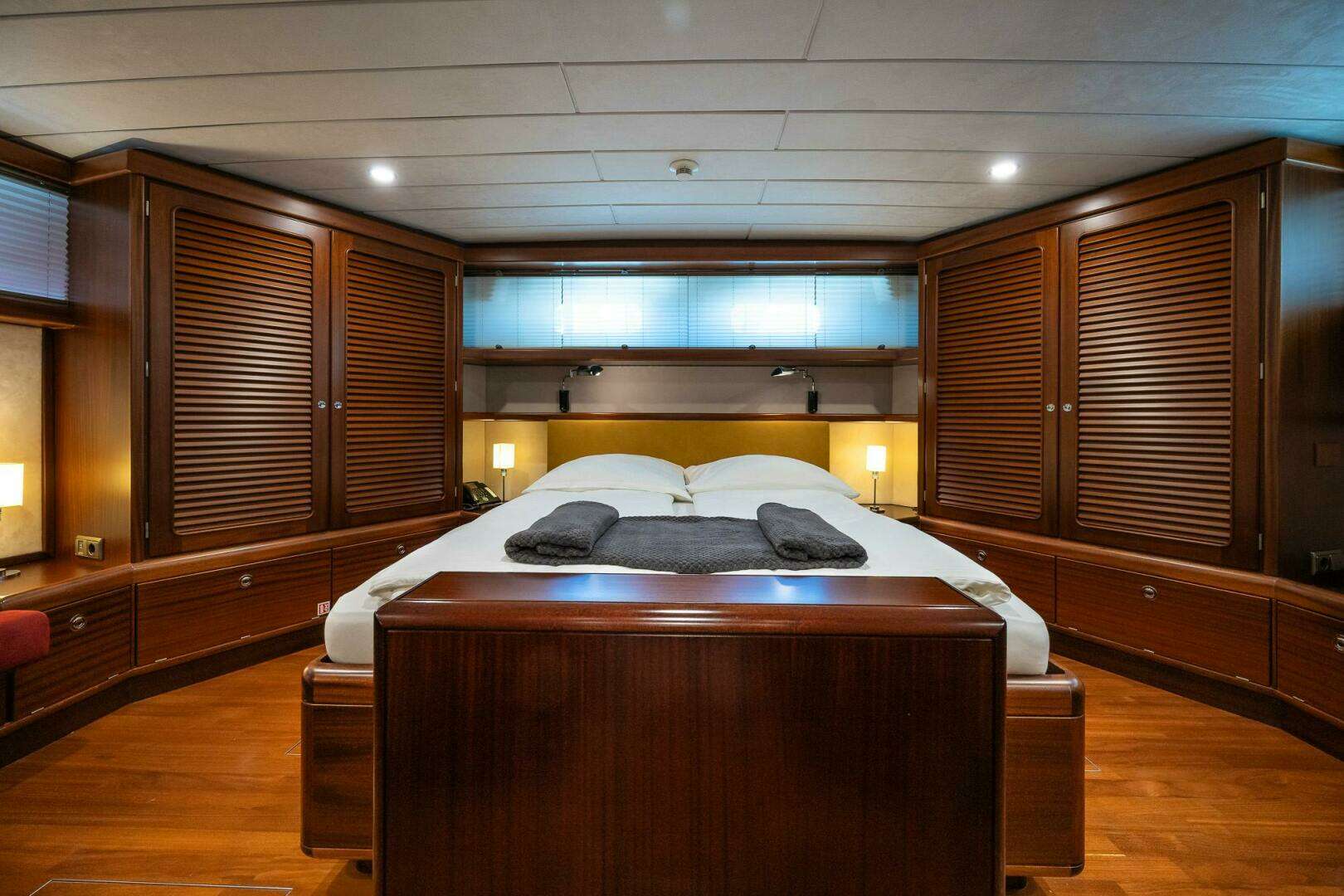 INTERIOR Separate owners department with large double bed and two ensuite bathrooms. Three double guest cabins, all with ensuite bathrooms. One crew cabinWood interior: Mercado Washing machine Siemens IQ 500 MASTER CABIN Big Kingsize bed, wardropes, TV, Control screen