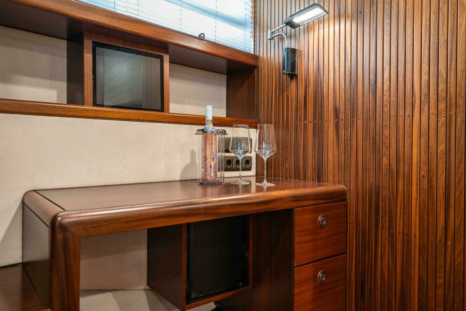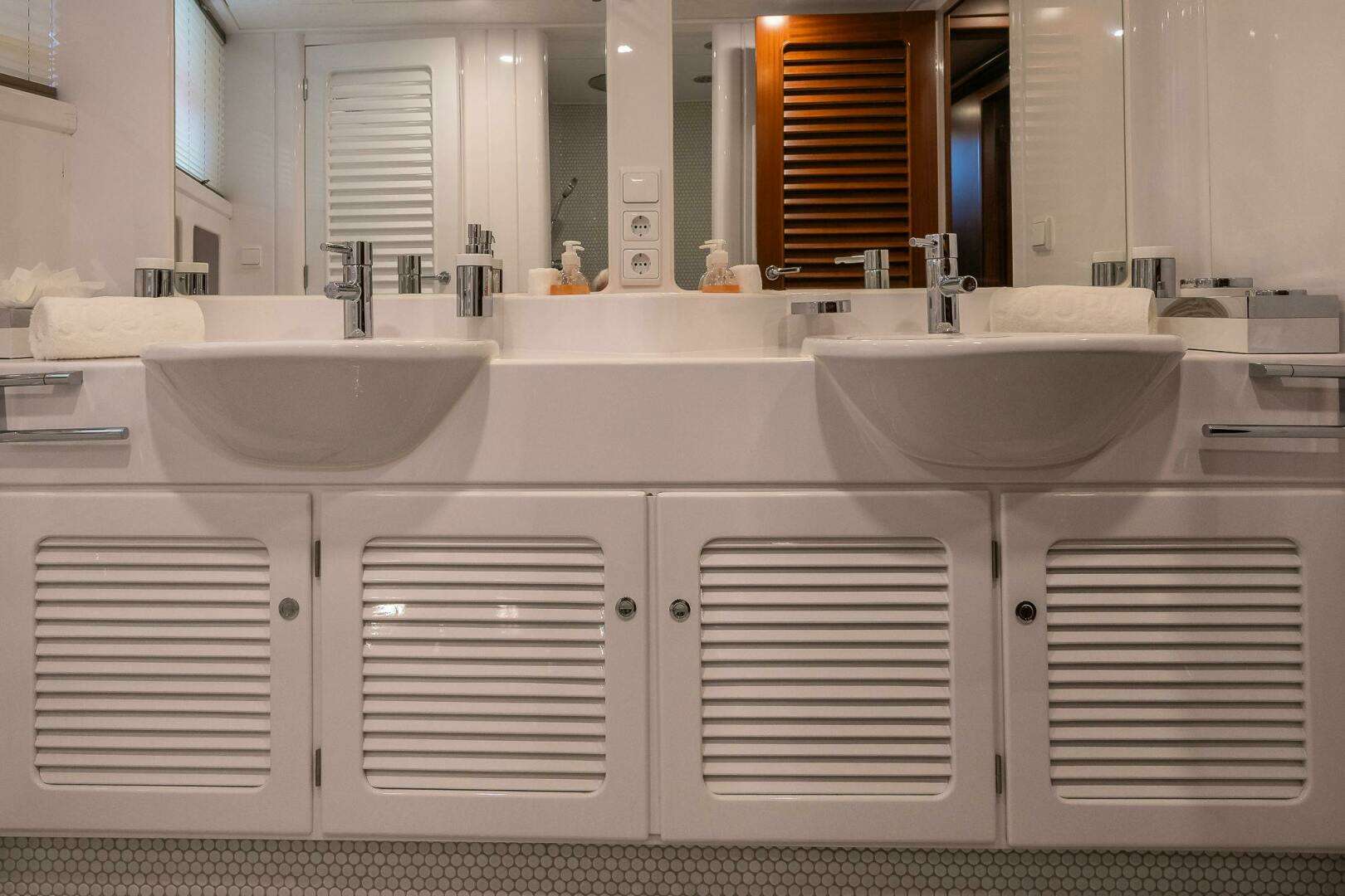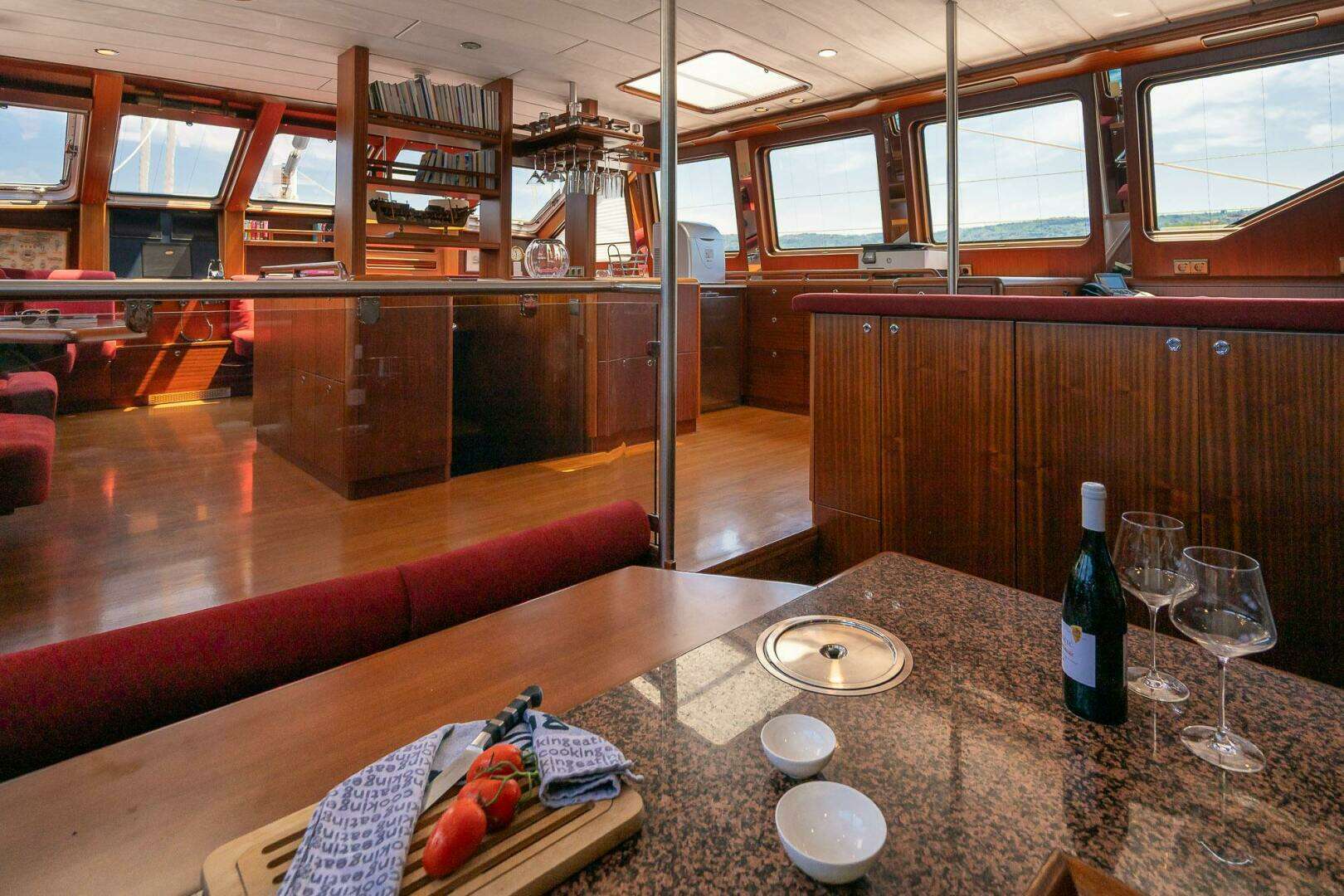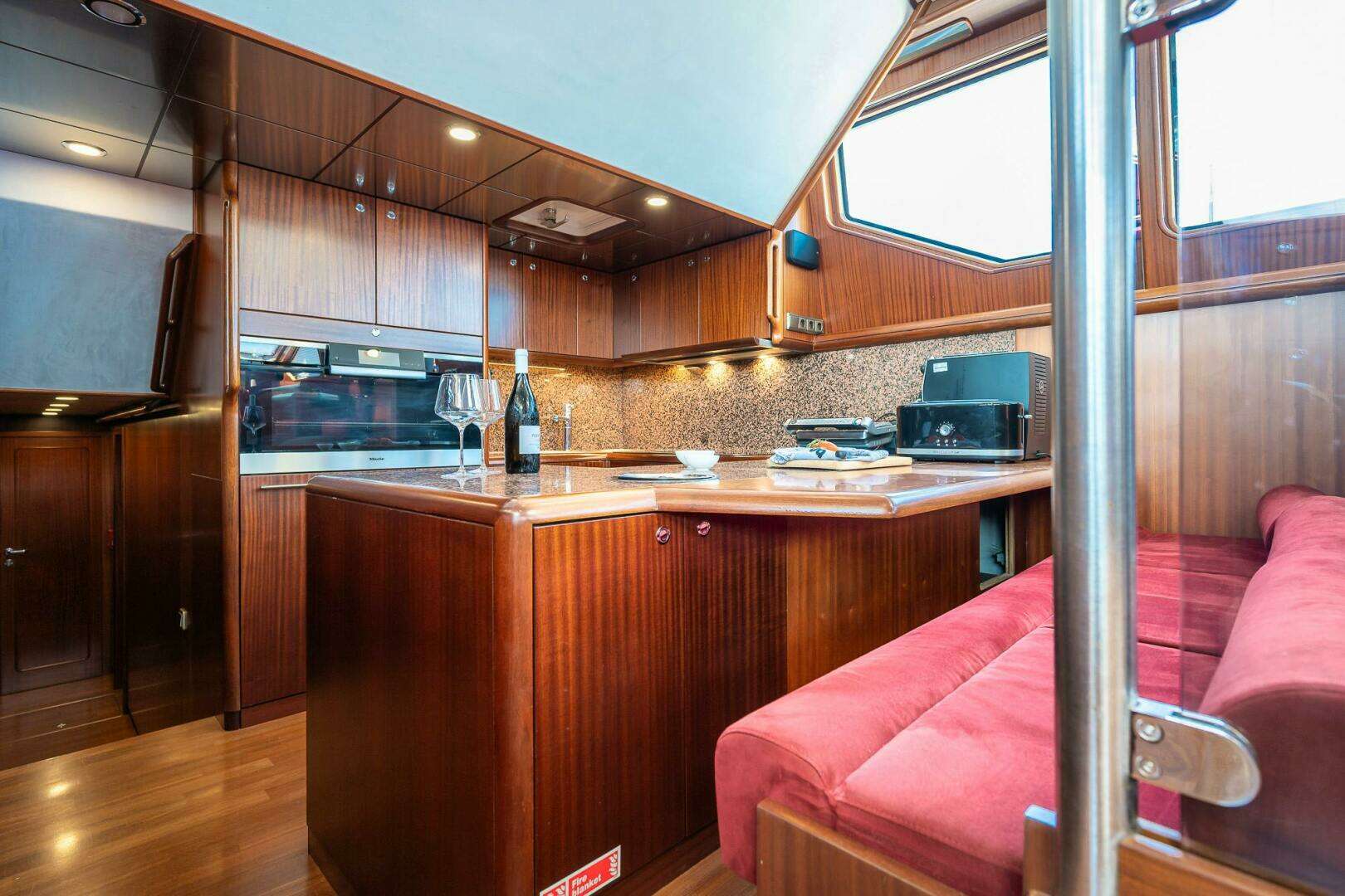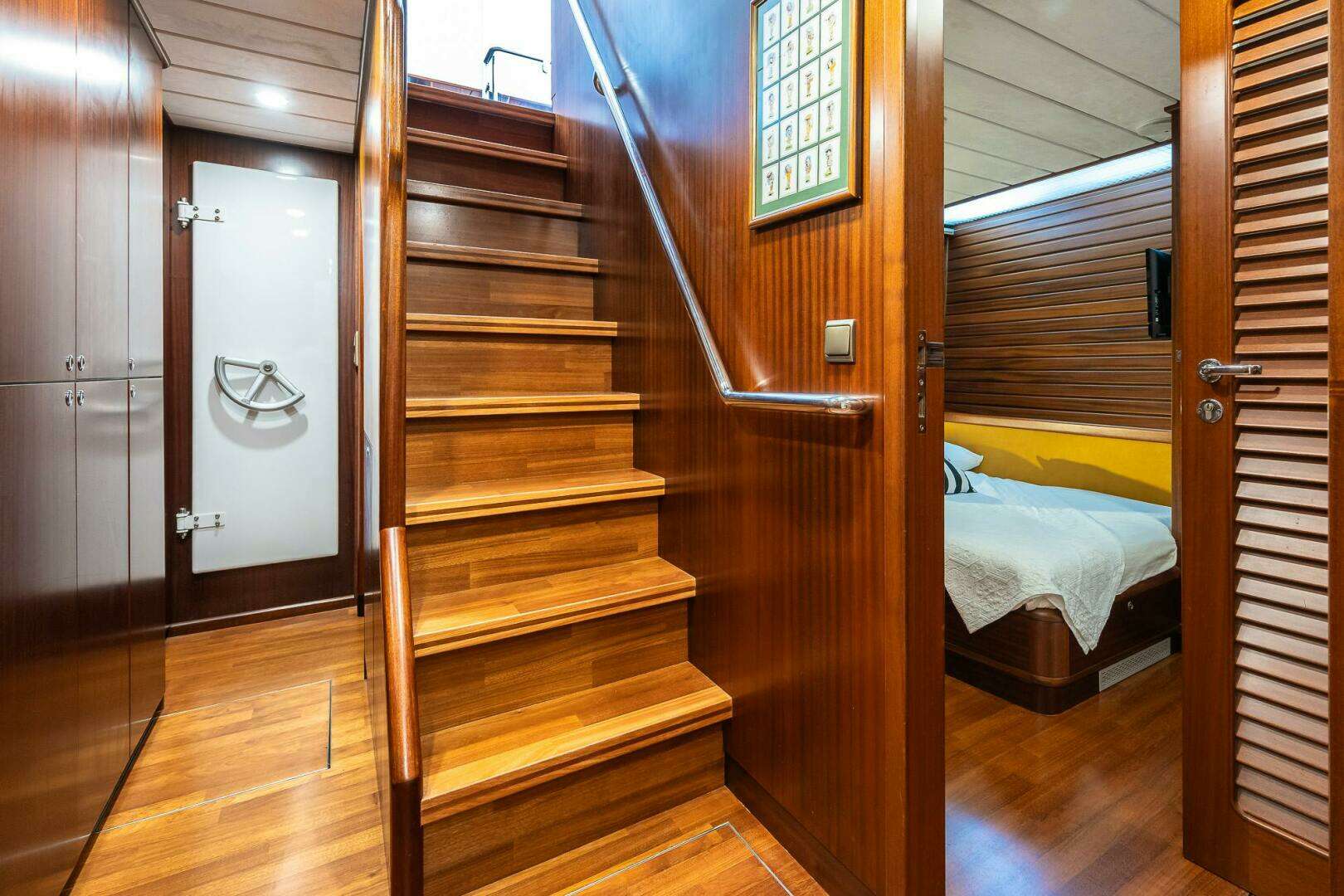 INTERIOR Separate owners department with large double bed and two ensuite bathrooms. Three double guest cabins, all with ensuite bathrooms. One crew cabinWood interior: Mercado Washing machine Siemens IQ 500 MASTER CABIN Big Kingsize bed, wardropes, TV, Control screen