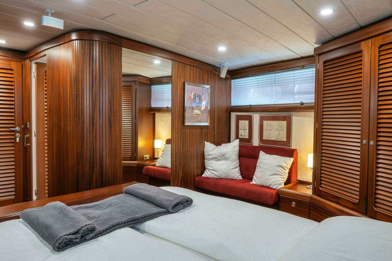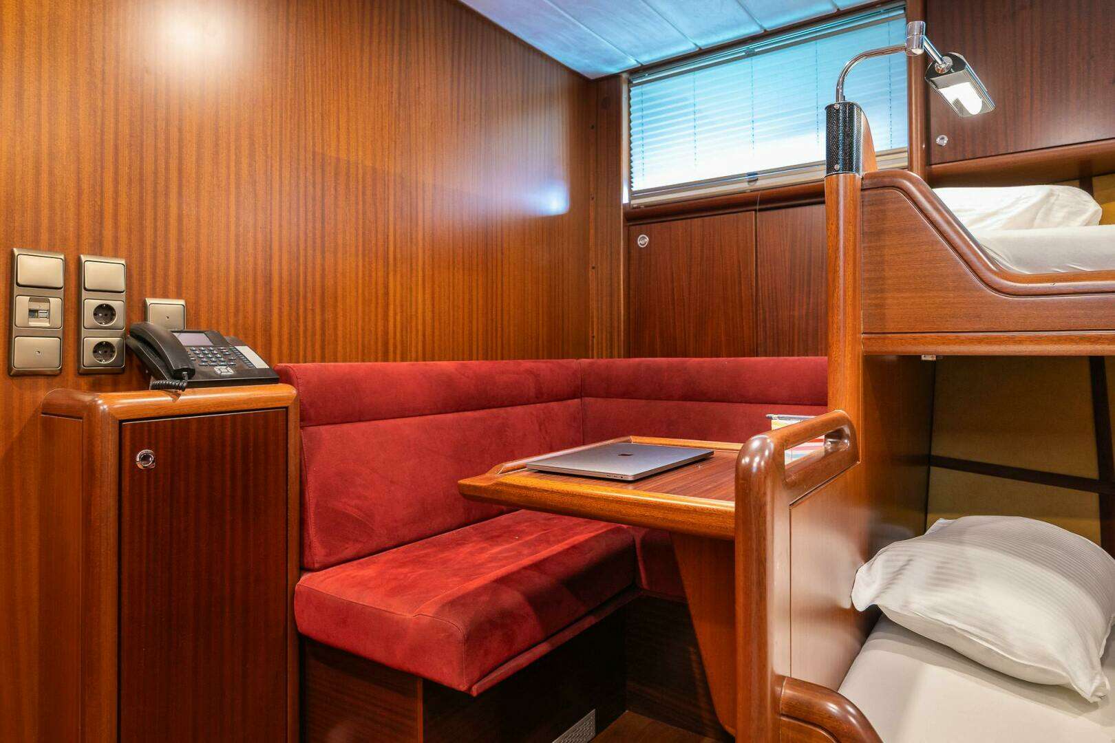 CREW CABINS & QUARTERS One big captains room with 2 beds, TV, entertainment system, control screen for the whole Yacht, diret access to the change room for the dive