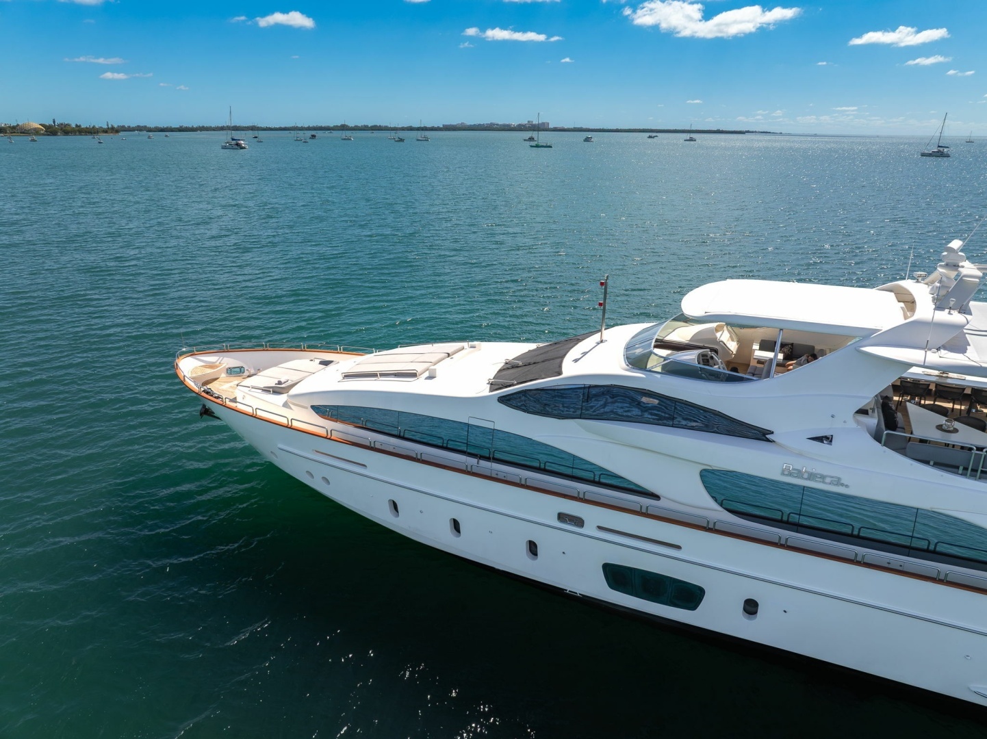 Introducing the stunning Azimut 105, a remarkable motor yacht from 2005 that combines elegance and performanceWith an impressive overall length of 103 feet, this vessel boasts a sleek modified vee hull crafted from durable fiberglassensuring both stability and style on the water. Powered by two robust