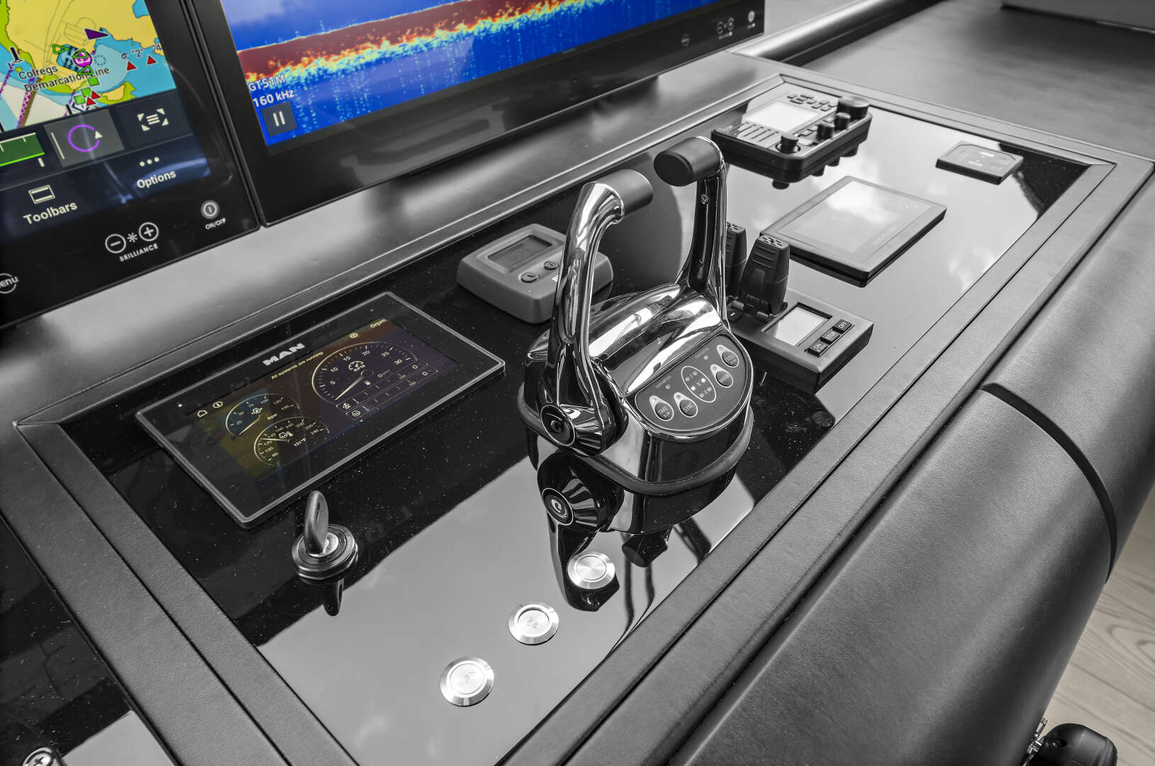 Designed to impress both indoors and out, the 32L offers the Novus Dusk wood interiors along with floor to ceiling windows and a formal dining area. Forward of the dining area for 10 is an oversized galley and day head. The flybridge offers an inviting full beam skylounge with a day head, and exceptional exterior spaces. The bridge deck features a four-person jacuzzi, wet bar, BBQ, and generous seating for entertaining. Powered by Twin MAN V12 1900hp engines and equipped with advanced zero speed stabilization, a full Garmin electronics suite, and robust onboard systems including 50/60hz converter system. “LA-LA-LA” delivers effortless luxury, reliability, and comfort at sea.