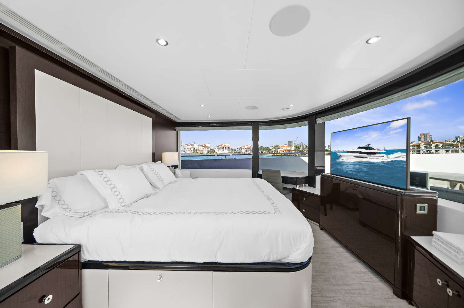 “LA-LA-LA” is a 5 stateroom 2024 Ocean Alexander 32L Skylounge that presents a rare turnkey opportunity, blending strong performance with refined, resort-style luxury. Recent services include engines, generators, watermakers, and a bottom job, making her fully prepared for immediate cruising. She is distinguished by a coveted on-deck Master stateroom featuring 180-degree panoramic windows and complemented by 4 spacious VIP and Guest accommodations. She has a dedicated 3 stateroom crew quarters plus 2 heads which allows for smooth, professional operation.