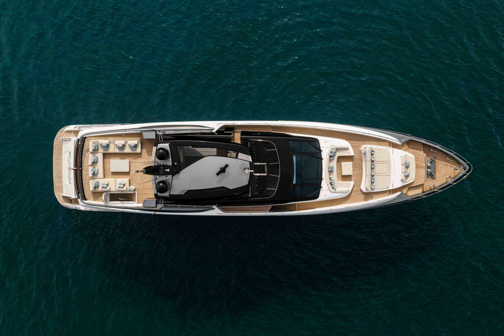 Her exterior styling, penned by Officina Italiana Design in collaboration with the Ferretti Group engineering team, delivers the clean, confident lines that define modern Riva design. Expansive deck spaces are arranged for comfortable outdoor living, with al fresco dining on two decks, integrated bars and multiple shaded lounging areas that work equally well for private use or charter operations.