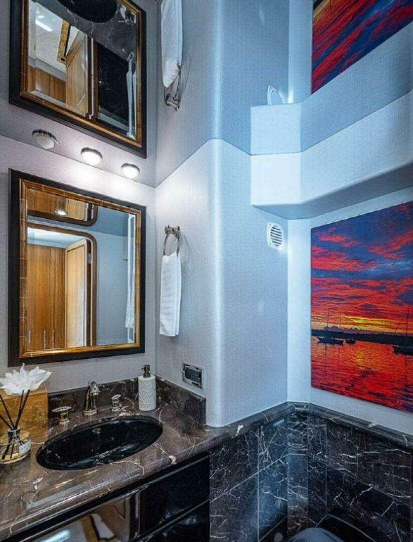 All of the artwork is excluded from the sale of this vessel, most notably three specific pieces: one located in the dining salon, one on the stairway leading to the staterooms, and the larger painting at the base of the stateroom landing.