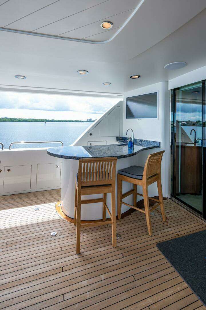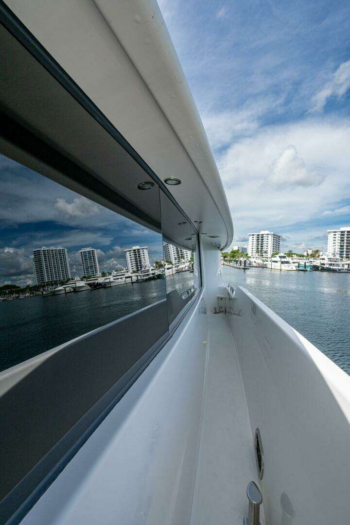 In 2025, she underwent a yard period at Safe Harbor Rybovich, receiving a full bottom job, stabilizer service, windlass rebuild, bow thruster overhaul, and davit paint. Upgrades included new exhaust risers, hot water heater, master cabin wall paneling, and refreshed countertops in the owner’s head.
