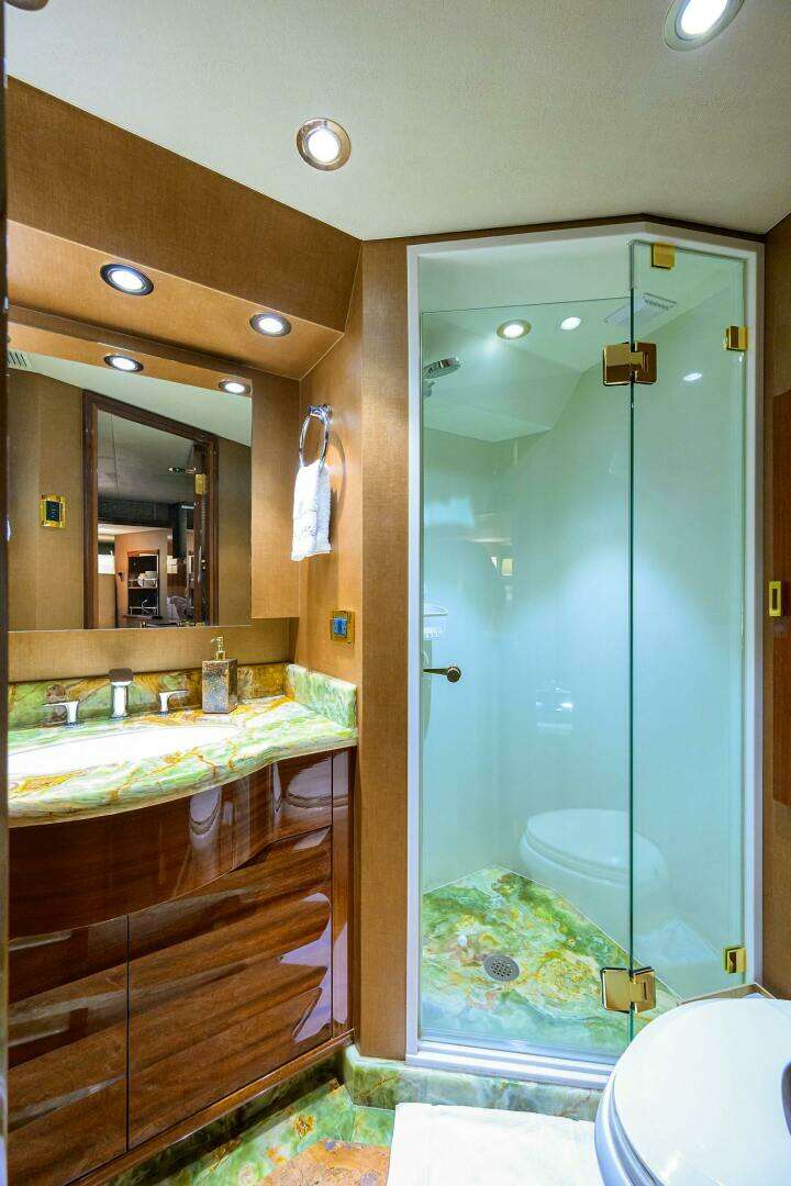 REMY ROO has the added option of entering from the normal mid ship boarding Entrance of the more casual Port and Starboard aft deck boarding gates as found on the newer Westports. Typically entering the vessel from the starboard boarding entrance, you have the ability to go forward to the galley for the ease of provisioning or aft to the salon. Entering from the vessel from the optional aft deck boarding gates on the carbon fiber Tide Ride stairs you step onto an immense aft deck with a large settee aft and a walk behind bar with an icemaker, refrigerator and sink with bar stools for casual entertaining.  MAIN SALON from the aft deck area through a custom curved electric door you walk into a full beam salon with sofas and occasional chairs arranged on port. The seating has also been set out for viewing of the 60-inch TV to starboard and aft for visibility of the dock or anchorage. Privacy is provided with Fashion Tech blinds and shades which use electric motors with RTS control, all updated in August 2025ÂThe dining area in the forward portion of the salon has a large custom dining table and 8 chairs with a Port and Starboard with custom built-in storage for China, glassware and flatware. The country kitchen Galley is forward through the starboard foyer with access to the day head and stairs up to the pilothouse. There is a large glass entrance door that is dual axis to be able dogged down for sea conditions.  The GALLEY is a desired Island kitchen layout to have a very bright and airy feeling with abundant storage.  A large U-shaped settee to port and forward for entertaining and casual dining with a large rectangular Skylight with sliding sunshade adds to the open feeling of the galley. All counter tops have been replaced with new lighter color marble and a new matching sink. VIP STATEROOM is forward and down a few steps with a centerline walkaround queen berth and an ensuite head. The VIP has custom sidelights that enlarge the stateroom as well. All guest staterooms feature ensuite heads with a large lighted mirror vanity, storage cabinets, upgraded faucets, Headhunter toilets, and upgraded stone accents to both the counters and shower. Master and Guest accommodations are accessed from the port side of the main salon, thru a foyer. The Foyer features a large entrance door with companion picture window, a large closet with the laundry washer and dryer stack unit for the owner and guest staterooms, additional freezer drawer storage and access underneath the Pilothouse where various ship’s electrical, equipment, and audio/visual central bases are located. This entrance area has a stone sole to the staircase leading to the lower Foyer landing. There is abundant hard luggage storage underneath this staircase.  MASTER and Guest Staterooms are located amid ship and accessed via a curved staircase to the lower Foyer. The Master is full beam and features a centerline king berth with gas shock assisted lift and abundant storage underneath Mahogany wood accents, overhead wood detailing and trays, and carpeted sole. The Master has a LED TV, enlarged portlights, abundant chest drawers, a companion seat, walk-in closet, and blinds, lighting, and audio/visual entertainment control are all accessed via the Crestron I-Pad tablet. The Master Stateroom has entrances port and starboard, to the his & hers full beam head. This head has dual vanities with overhead lighting, upgraded faucets on the vanities, storage cabinets, upgraded dual shower heads, custom upgraded stones on the vanity tops, sole and in the centerline shower, Headhunter heads, and linen closets.  Guest Staterooms are located aft of the lower foyer and feature overhead LED lighting, enlarged port lights, and carpeted soles. The port Guest Stateroom features side by side twin berths with storage underneath, a nightstand which can be relocated and the berths joined to create a single large berth, and hanging locker. The audio/visual entertainment, and lighting are operated via the Creston I-Pad tablet. The starboard Guest Stateroom features two side by side berths with a nightstand in the center that can be relocated and both berths joined to form a large, single berth. There is storage underneath each berth accessed by drawers, and a hanging locker. The audio/visual entertainment located forward.  The PILOT HOUSE features the full complement in navigational electronics; a power actuated custom Stidd helm chair, navigation desk, a large oval shaped observation lounge with table,180-degree visibility through large Pilothouse windows, a pop-up LED TV, and a staircase up through a sliding stainless door to port accessing the Flybridge.  Navigation equipment has been updated FLYBRIDGE has a centerline helm (3) Stidd power actuated chairs, teak sole, factory hardtop with overhead LED lighting; a large seating area to starboard with teak table, a full bar with sink, refrigeration, icemaker, grill and bar seating to port. The Boat Deck is down a few steps aft and features a large hot tub to port, a lounge to starboard, access to staircase via a protected sliding door to starboard, and ample storage for a 15’ RIB tender with davit crane.  The Foredeck of REMY ROO was redesigned to feature a large sun pad with more storage underneath. Just one side stores 8 scuba tanks as well as 8 sets of dive gear. New teak decks are being installed for the lower section of the flybridge/boat deck making an attractive seating area with tender removed. The redesigned CAPTAIN AND CREW quarters and engine room are accessed from either the aft deck to starboard, or the swim platform. This area has a laundry center with washer and dryer, sink and refrigerator, cabinets, and a large icemaker and 2 freezers. The Captain's Stateroom is located to port with a queen berth, cabinets, a hanging locker, ensuite head with shower, entertainment, and desk. The 2 CREW Staterooms are to starboard, and both have double over/under bunks, the crew staterooms share an ens