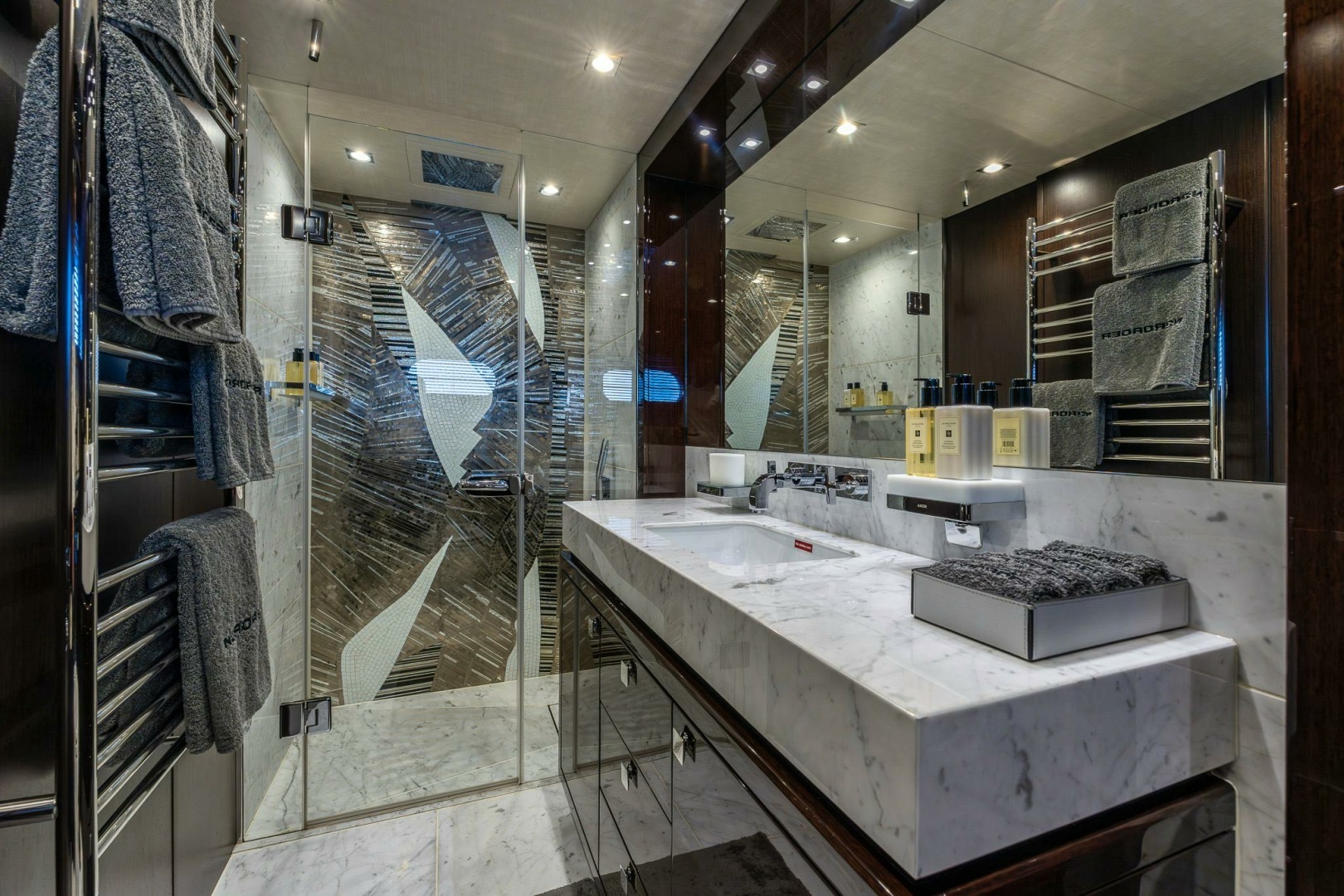 ► Electric Roman Blinds with App functionality throughout Yacht