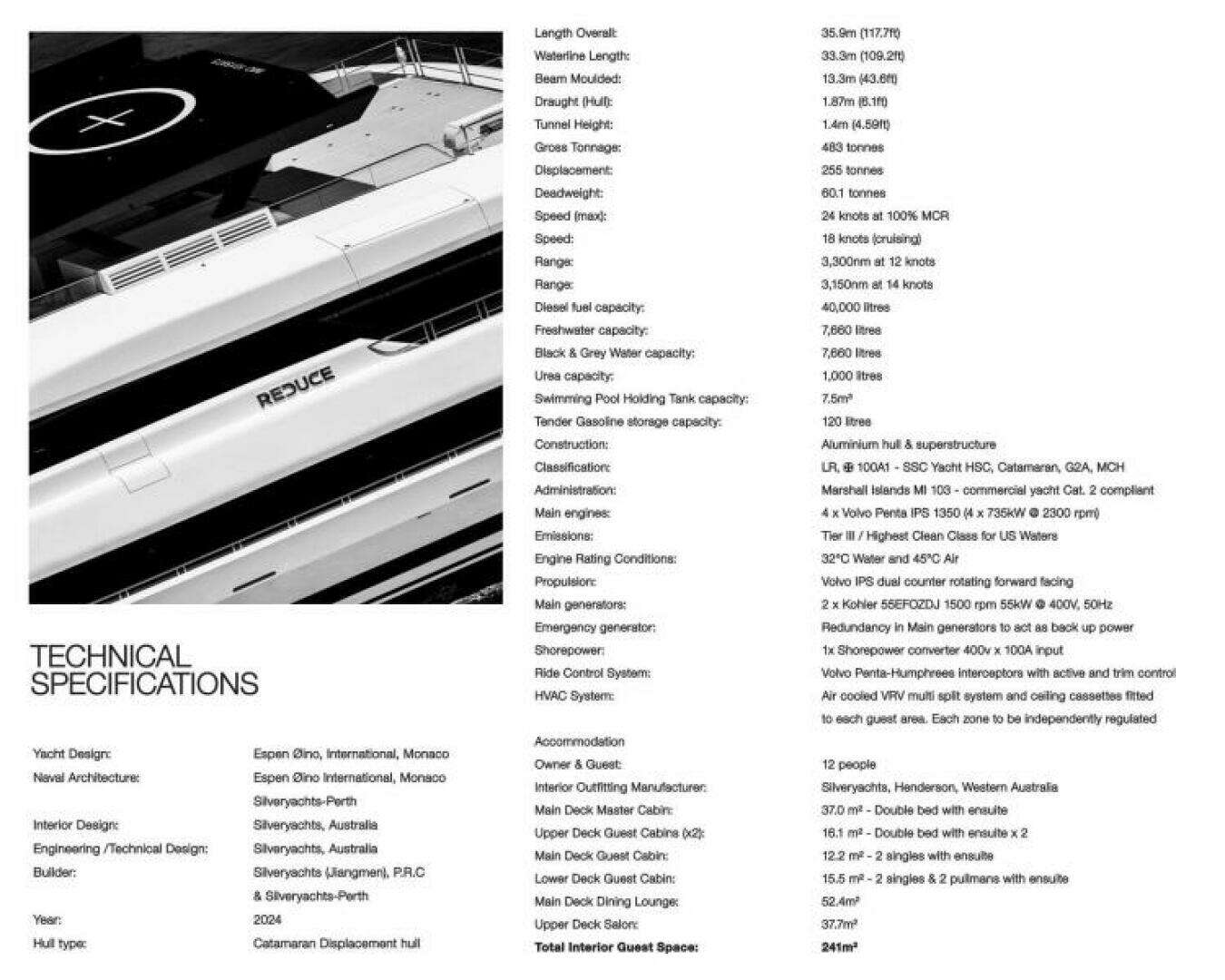 35.97 m2025 Silver Yachts 118' Reduce Silvercat 36M