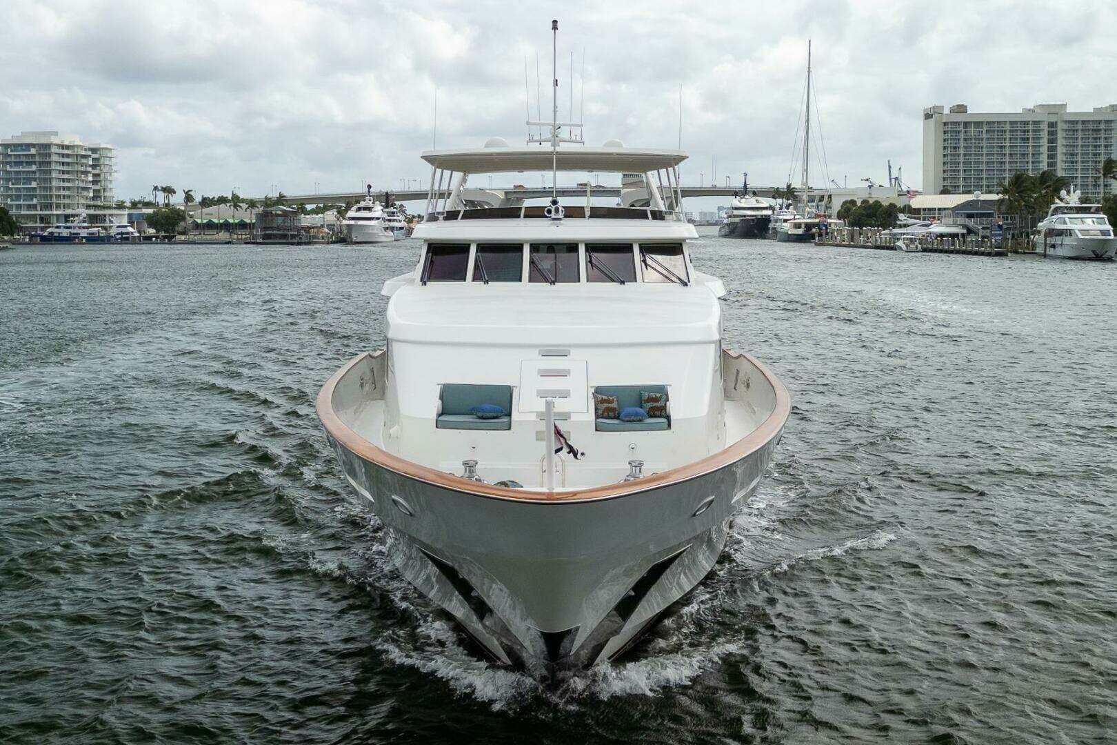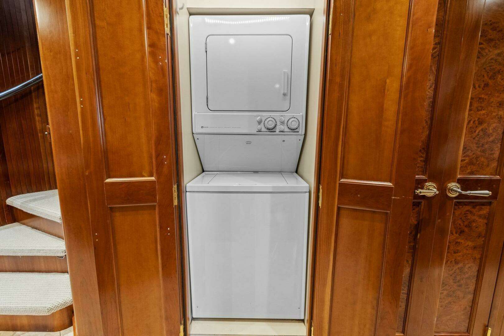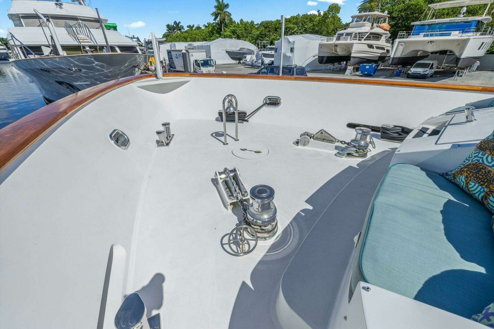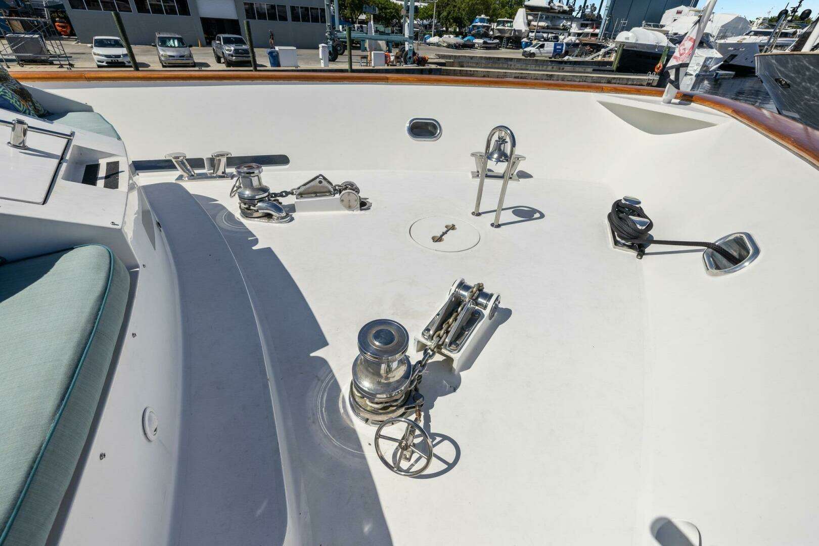 - Expansive flybridge with Jacuzzi, full-service wet bar, new propane barbecue, and a large boat deck for toy and tender storage