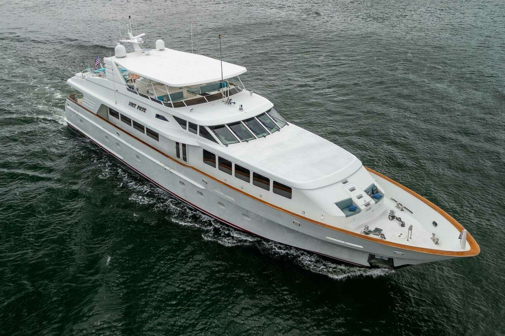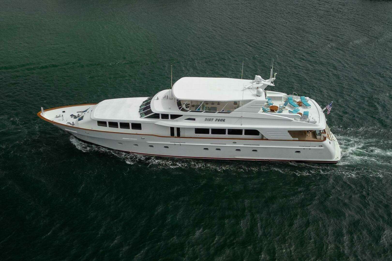 DIRT POOR is a classic 118’ Trinity raised-pilothouse motor yacht, originally delivered in 1999 and continuously refit to preserve her pedigree and performance. With generous volume and timeless styling, she combines a warm, inviting interior with expansive exterior spaces suited to entertaining or private relaxation.