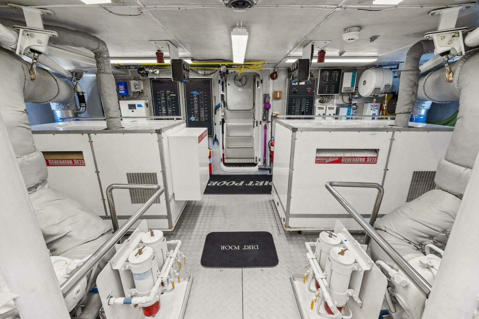 DIRT POOR is powered by twin Caterpillar 3412C diesels, each rated at 1,350 hp. As of September 2025, both engines report approximately 8,020 hours, with the port engine receiving a complete rebuild in 2024. Trinity’s use of the 3412C series underscores their reputation for durability, worldwide service support, and long lifecycle reliability. With consistent service, DIRT POOR’s power package remains a proven platform for safe, extended cruising.