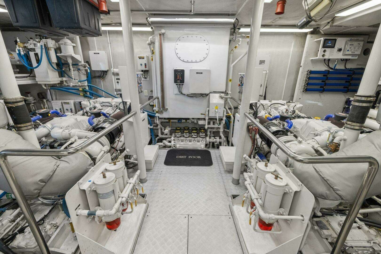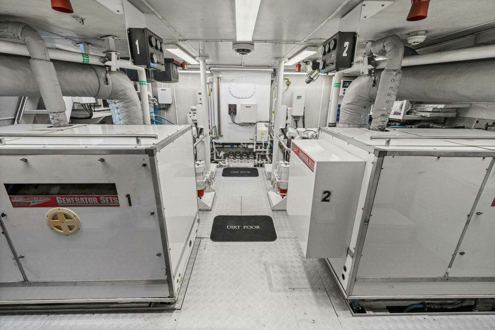 Supporting systems have been well cared for and upgraded as needed, including generator rebuilds, air-conditioning replacement, and shore power conversion. Her machinery spaces reflect the continuous maintenance program that has kept the yacht in strong operational condition.