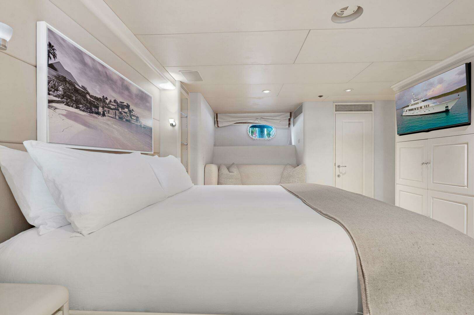 • Captain's cabin with full double berth, Samsung 44" LED TV and private bath located aft of pilothouse
