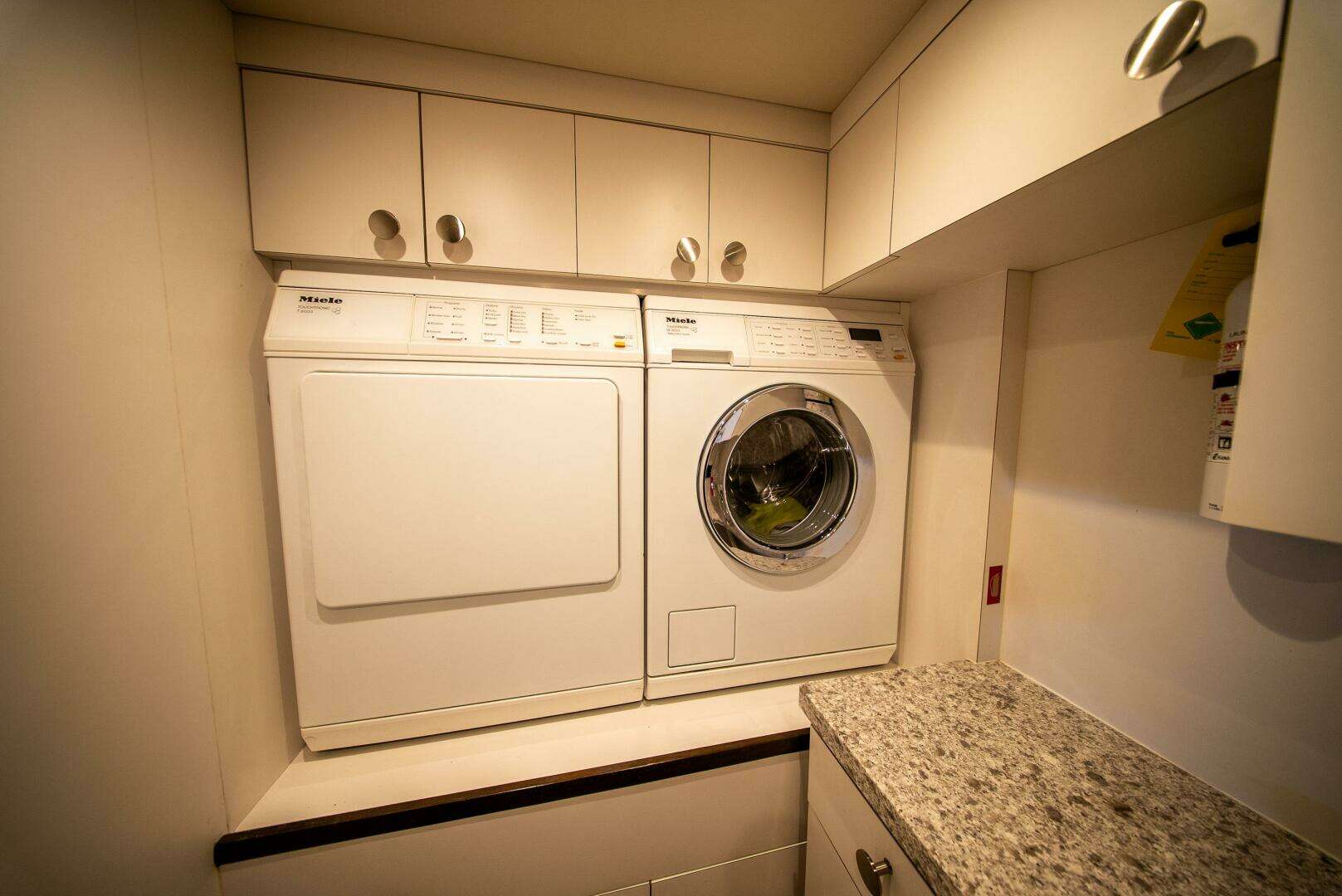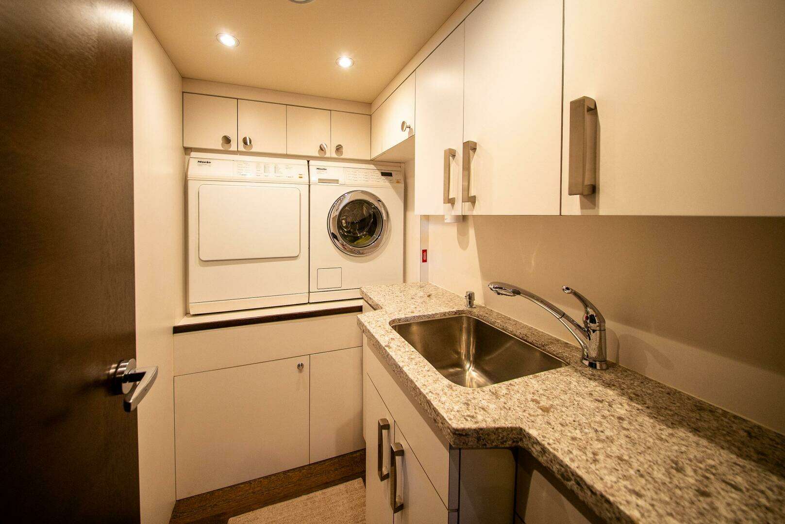 STATEROOMS - Owner and guest staterooms are located on the lower deck and are accessed by way of a staircase on the port side forward of the salon. There is a very nice foyer with a laundry room housing a large washer and dryer.