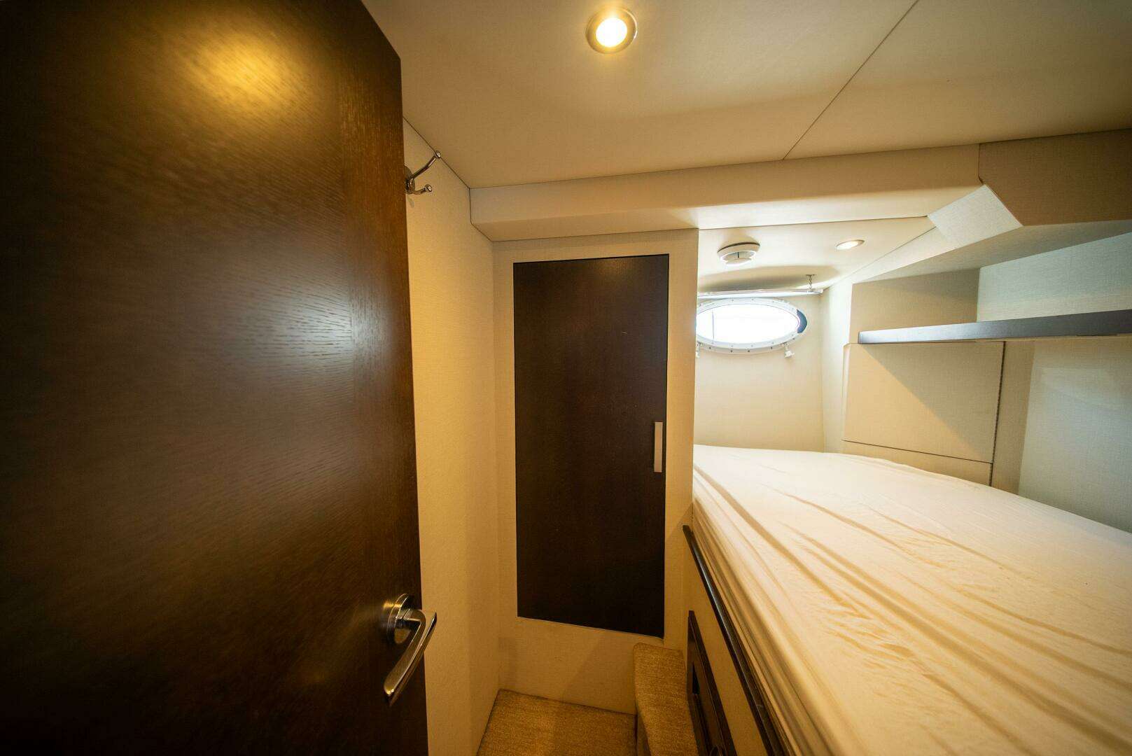 CREW AREA - The crew cabin can be accessed via a water tight door on the swim platform. There are two staterooms that accommodate three and a shared head with stall shower. A self contained, comfortable galley is well equipped.