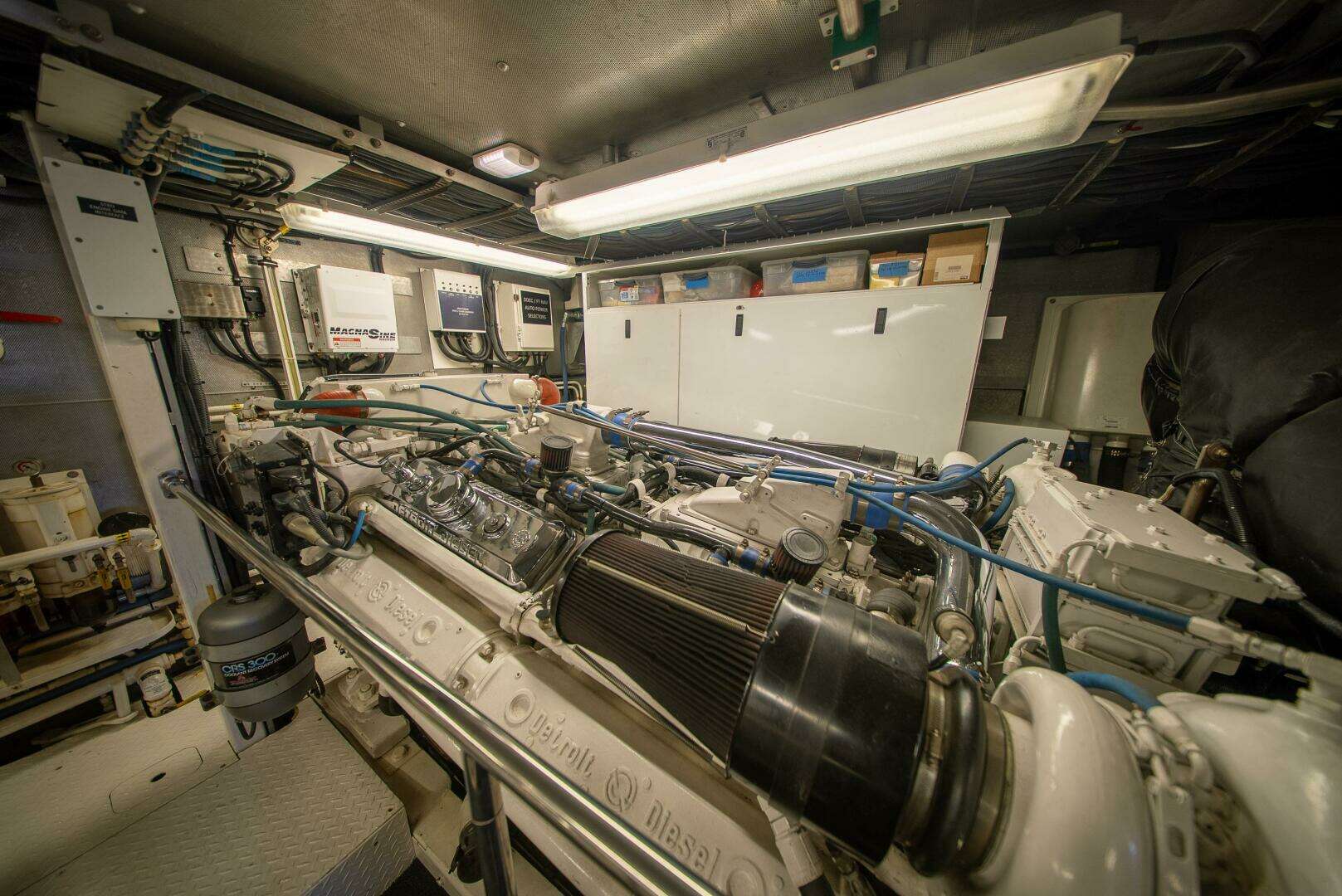Aft through a water tight door is the crew space with galley and moving forward past the engineers station and mechanical space is the engine room.