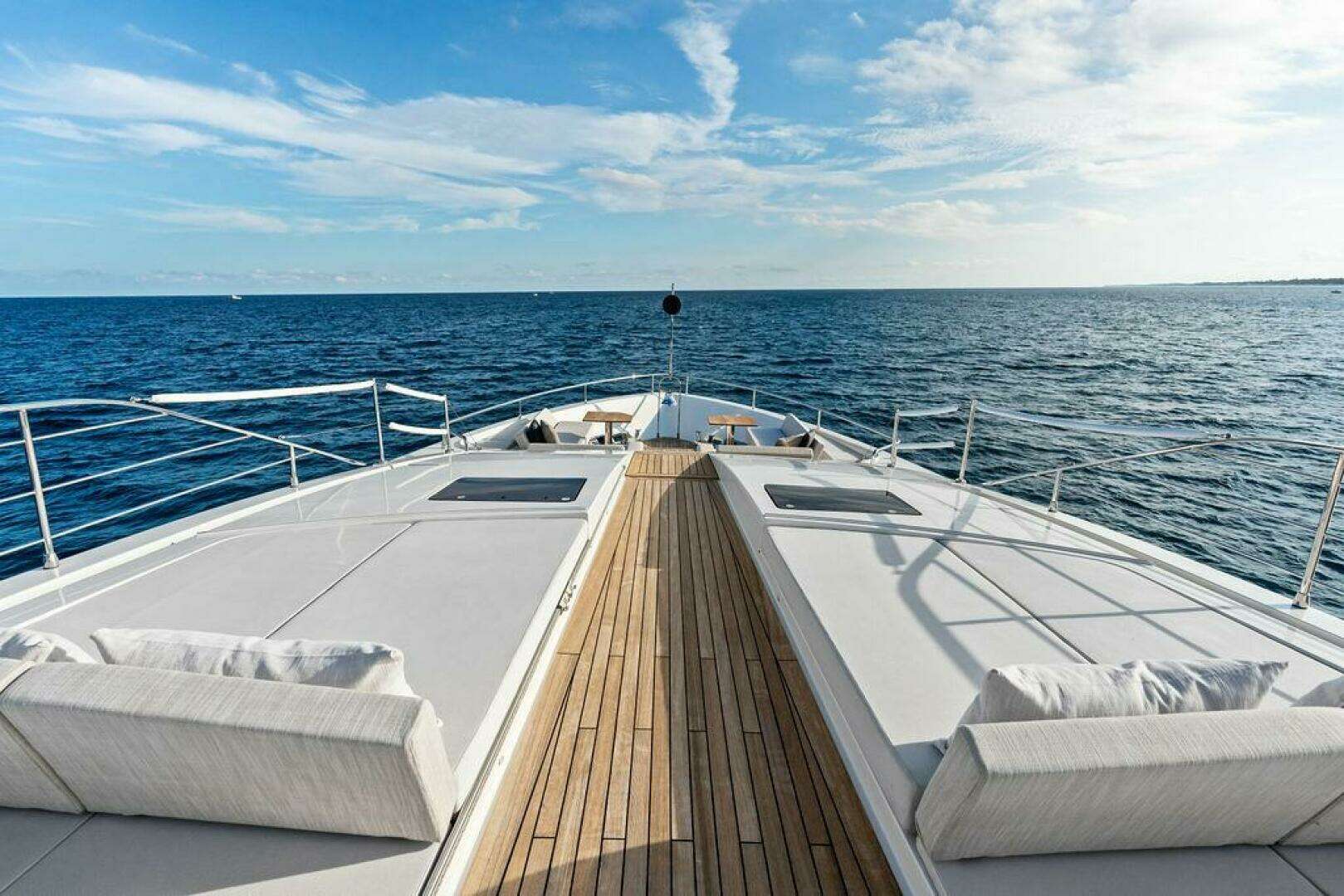 - Fwd U-Shape seating with (2) teak tables
