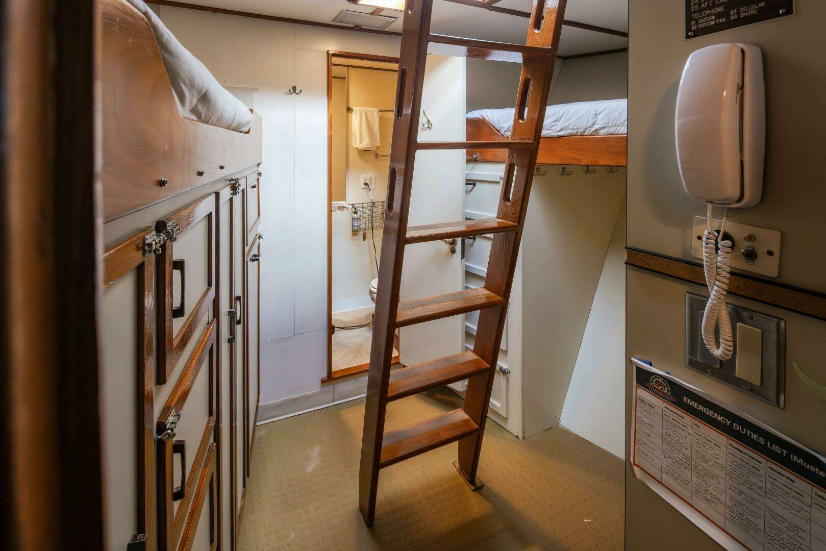 The utility room is accessed directly from the cockpit and is exceptionally well equipped, featuring two extra-large chest freezers, an icemaker, and a VacMaster sealing machine, deal for extended cruising or serious sportfishing. A large, dedicated workbench alongside ample tool storage provides excellent functionality for maintenance and onboard projects. This area also includes a private crew stateroom with two extra-long berths, a dedicated ensuite head and shower, and ample built-in storage to comfortably accommodate two crew members. -(2) Kenmore chest freezers-(2) Generator panels