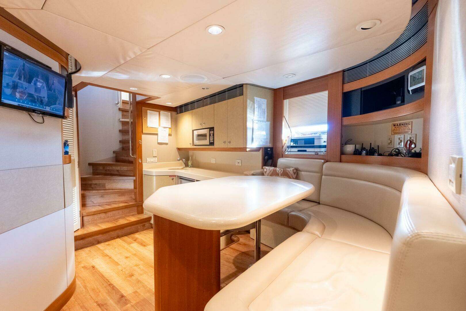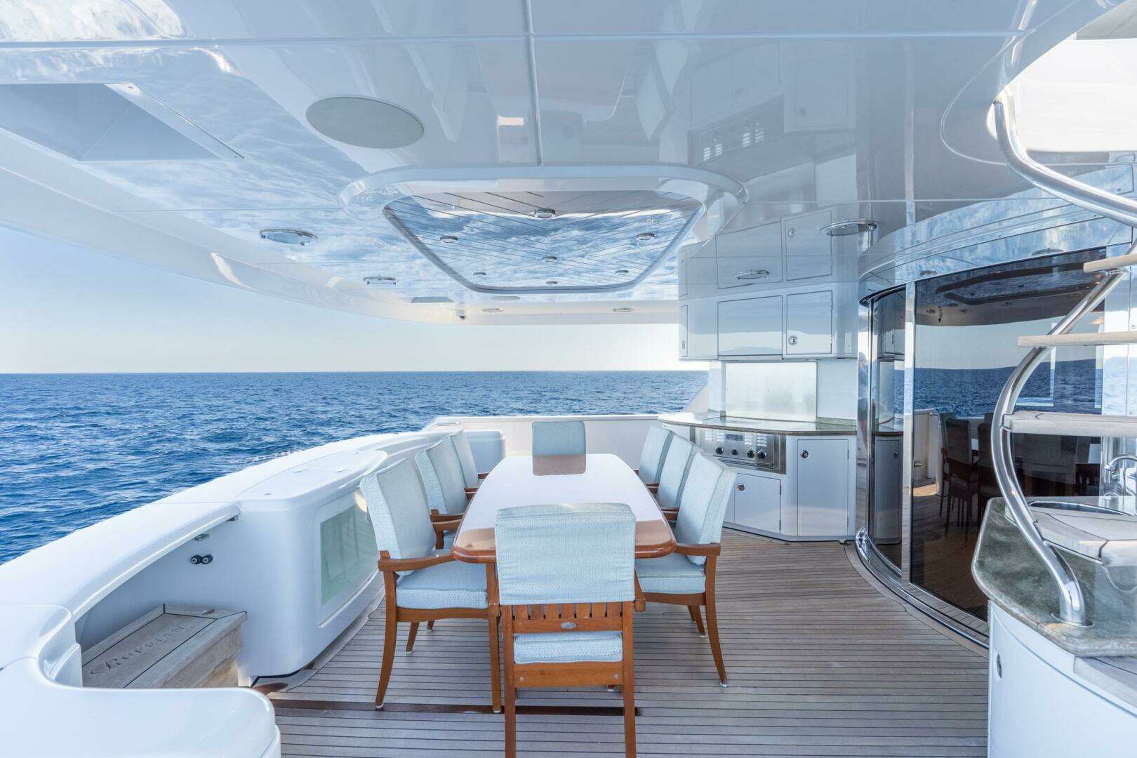 - Additional speakers in dining room, aft deck, wheelhouse, sundeck, flybridge, crew lounge, galley, and crew cabins