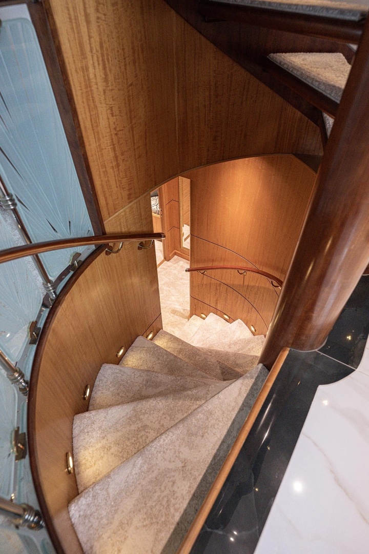 There is not only access from the aft deck to the skylounge deck via regular stairs, but to the swim platform, walkaround decks and the engine room as well.
