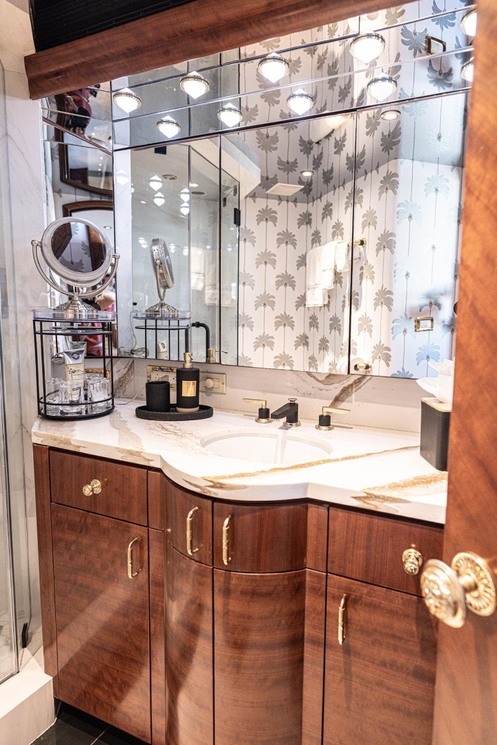 Built to and still in ABS Class, the yacht comprises five staterooms all with ensuite bathrooms, with the full beam, on-deck master suite having dedicated his and hers bathrooms and a large well-appointed office.