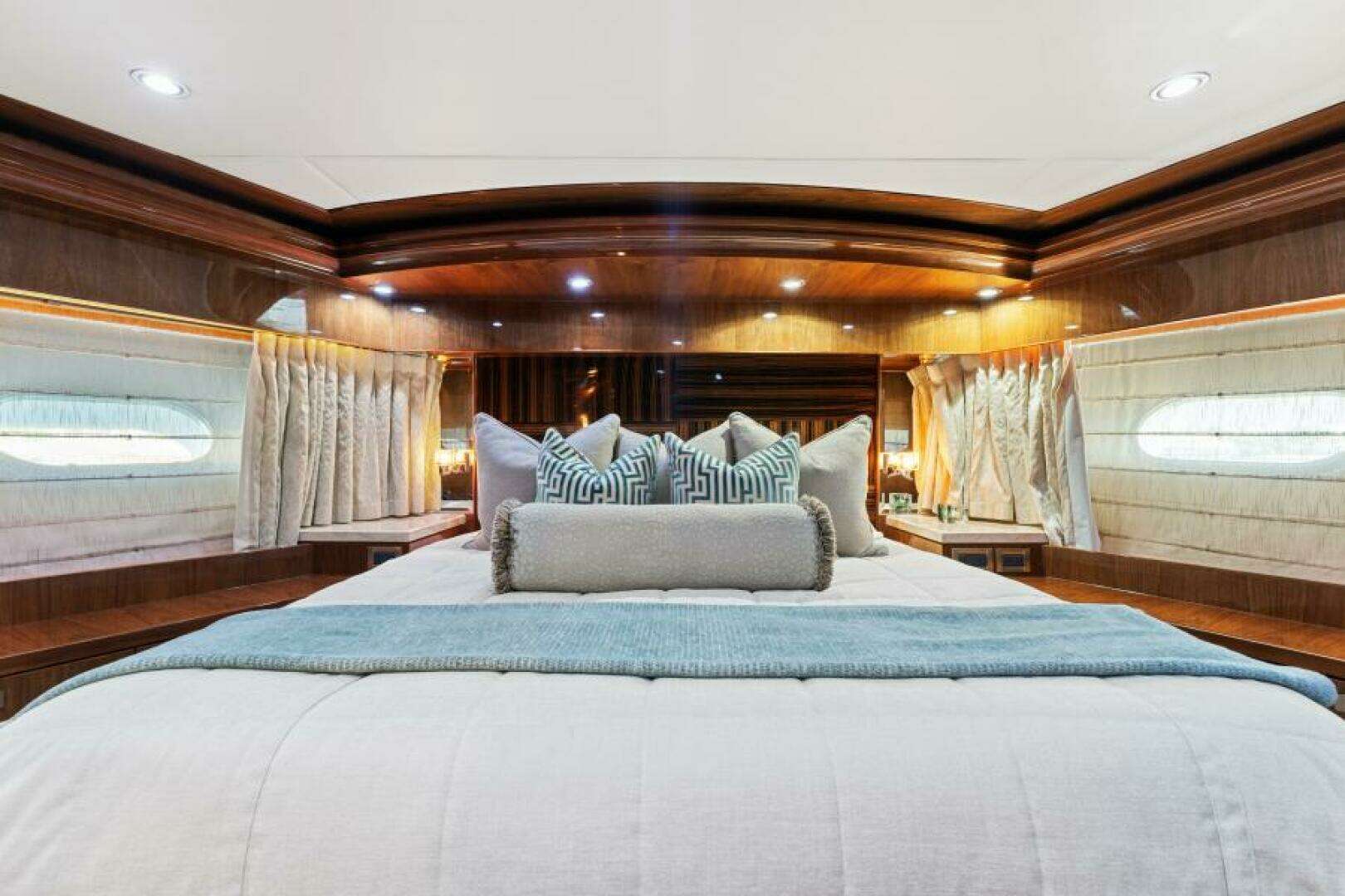 The objective for this project was to create a contemporary interior with great balance, clean, sophisticated cabinetry lines with an enduring appeal; for charter or private use. The combination of contrasting surfaces of Gloss Walnut wood, Espresso and Taupe Zebra veneer accents, Sculptured glass and Cream Kaduna Marble (Royal Oyster) creates an abstract and sculptural impression that is truly refreshing. All the guest and social areas are generously proportioned and are perfectly appointed.
