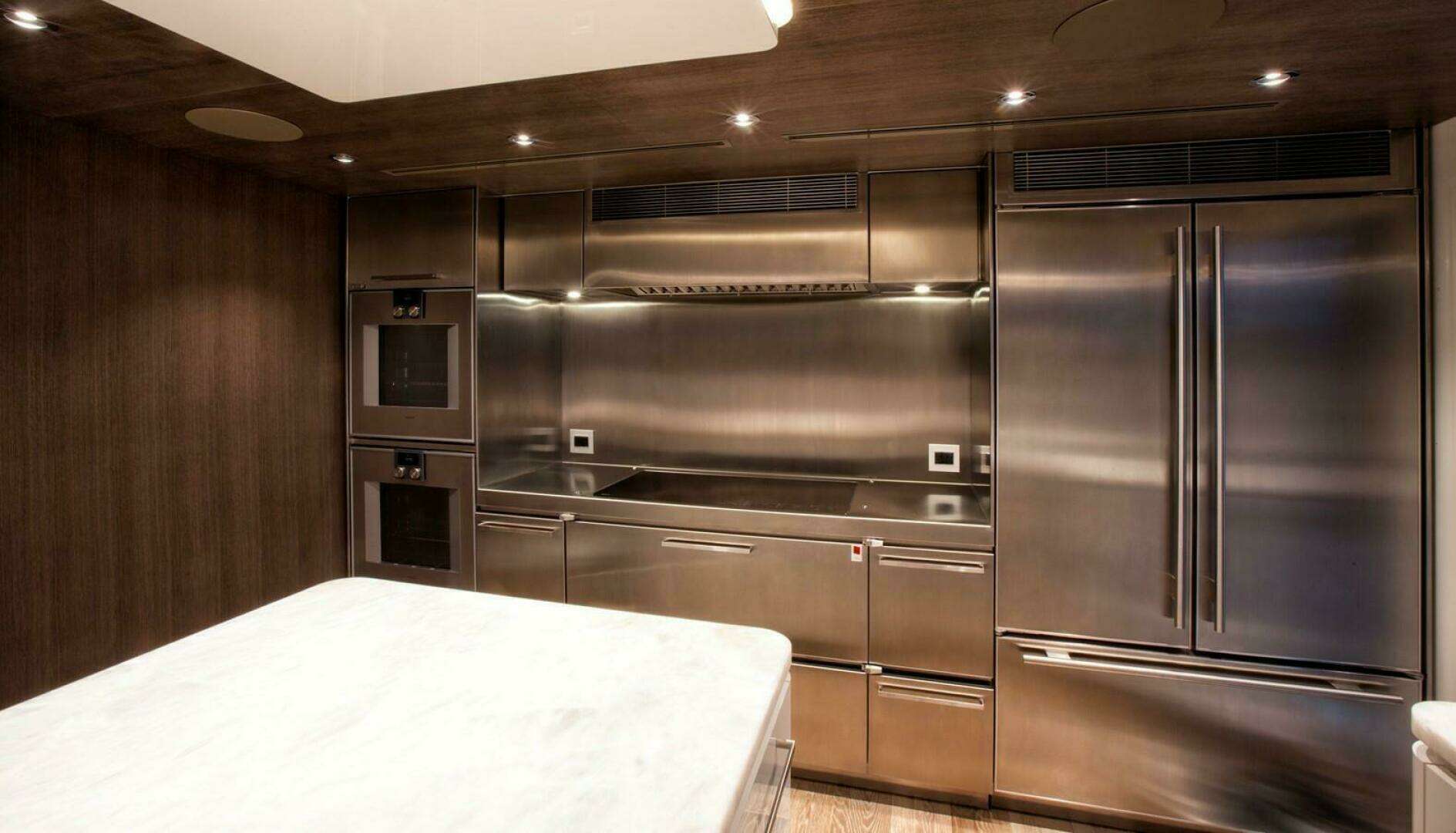 • Custom fit, secure storage is provided for formal tableware in the Dining area. Casual and Crew tableware is stored in the