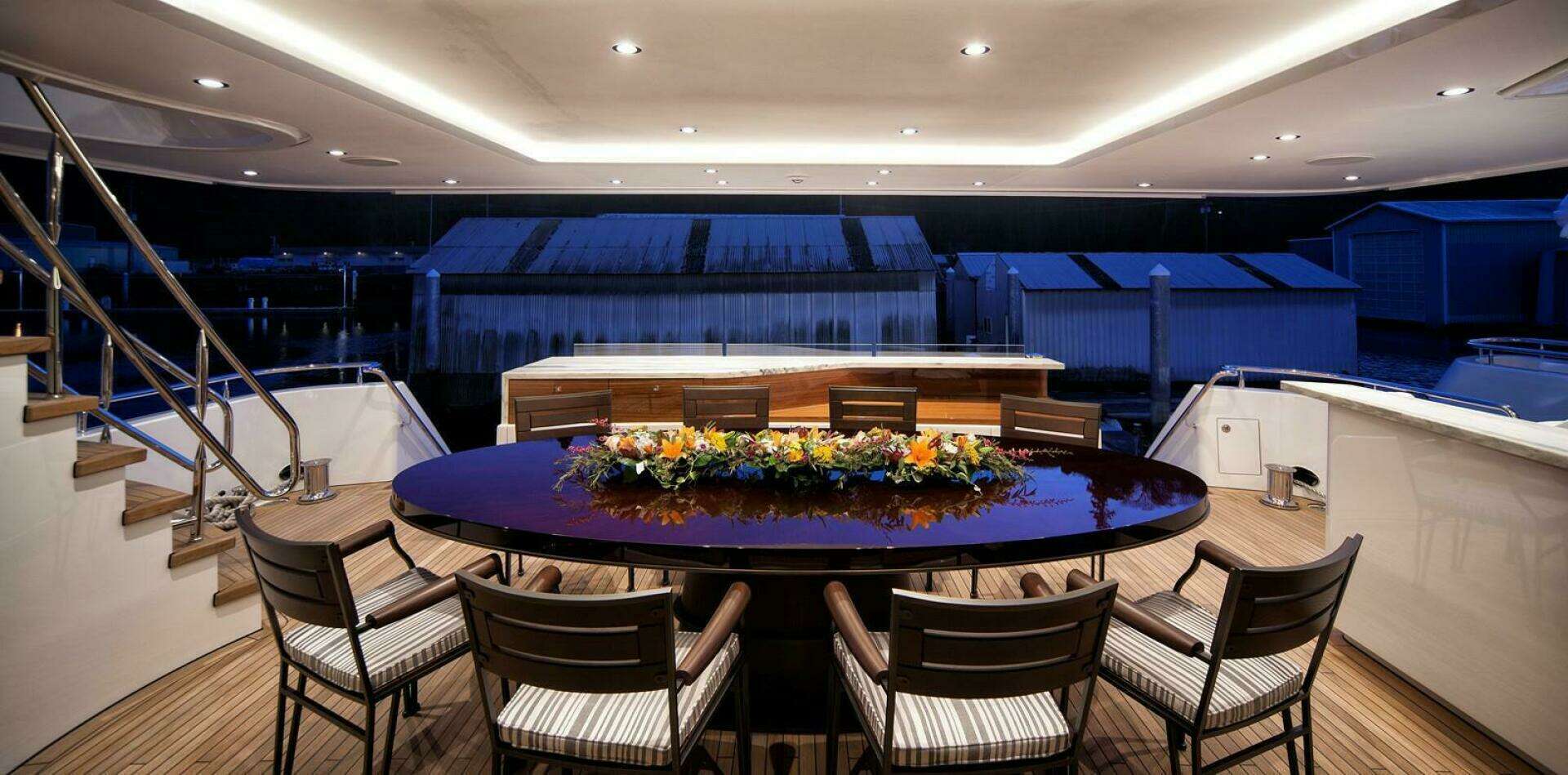• Covers: Snow White Stamoid covers are custom made for exterior settees, tables, bars, Flybridge console, Tender, sun pad/hot tub and loose furniture. Snow White Stamoid bags will be utilized for loose handrails for Passerelle, boarding ladder and items such as folding chairs