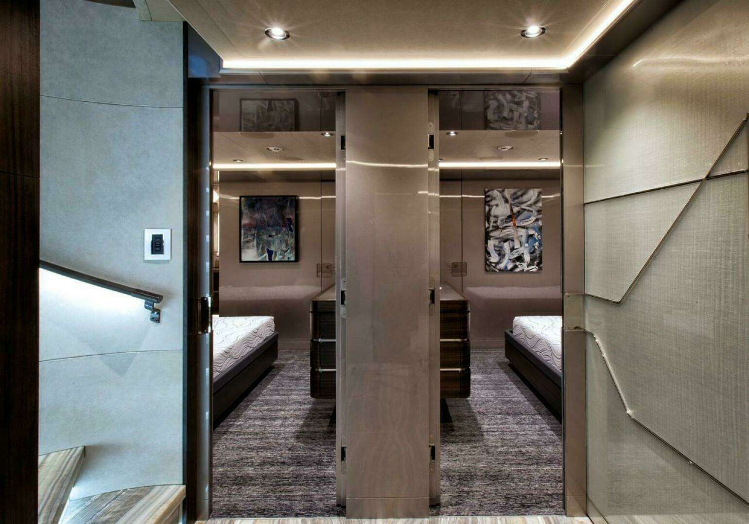 Built by an experienced yachtsman and prior Westport owner, SERENITY was delivered as PEPPER XIII in 2017 as a 2018 model. SERENITY is 1 of 9, 125’ Wesports that were built in Washington State. She is US built and US Flagged, built to ABS Class. With a generous 329 GT, she comfortably sleeps 8 in 4 well-appointed luxury staterooms with the primary stateroom on the main deck. Including His and Her ensuite complete with steam shower. Below deck, the yacht was built with a gym which could be converted to a 5th stateroom. Holly Hunt designed with a contemporary feel. One owner. Never chartered.
