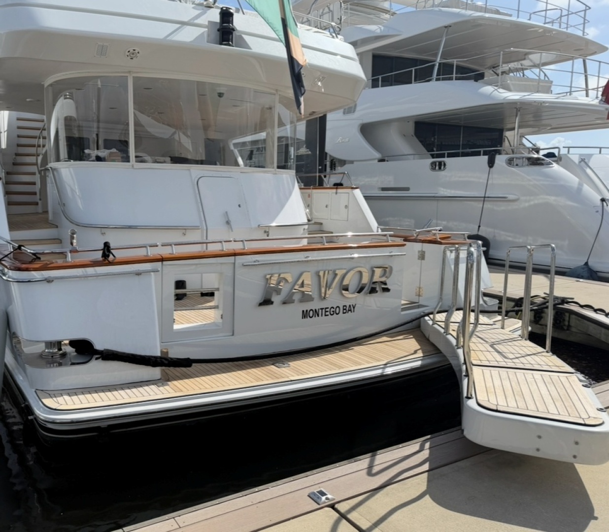 · New teak decks on skylounge aft deck, cockpit, stairs and swim platform – USD 166,275
