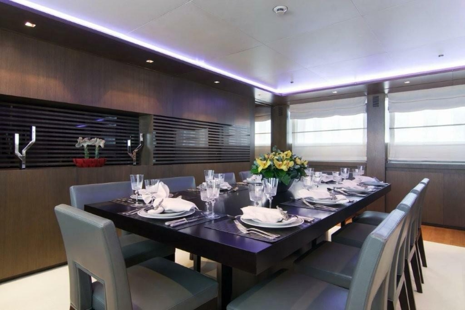 Her striking lines are accentuated by her Super Jet black and Haze grey livery making her a real head turner. Built by the renowned Admiral shipyard with exterior design by Luca Dini, She is impeccable having been lovingly maintained and continually upgraded including two substantial refits in 2017 and 2023.