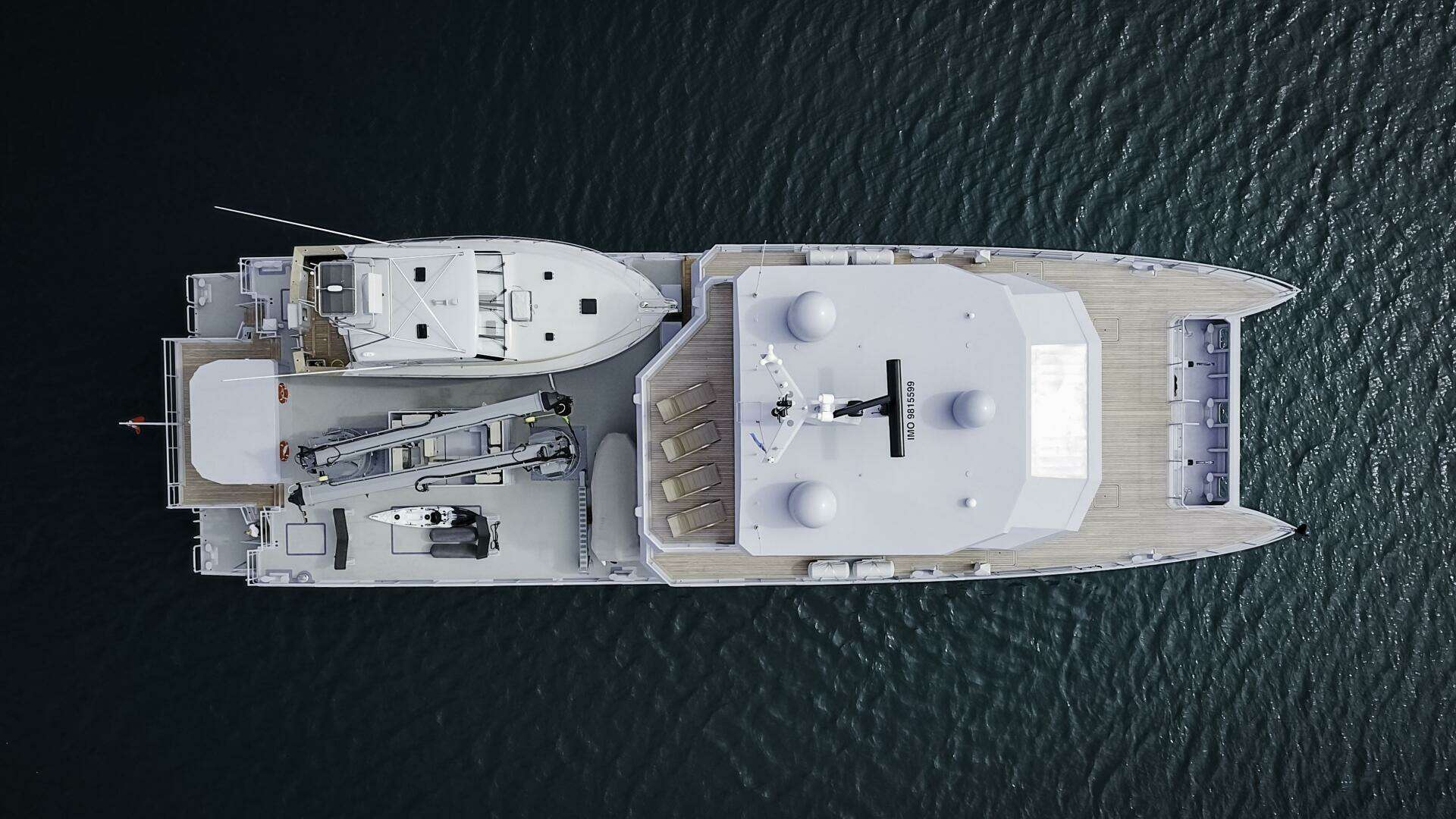 - Large Tender Storage: Optimized configuration with 13m tender storage port side, 8m and 5m tenders starboard side (three tenders total)