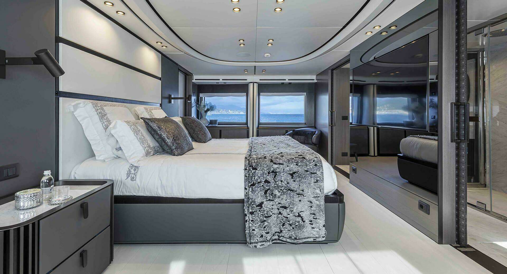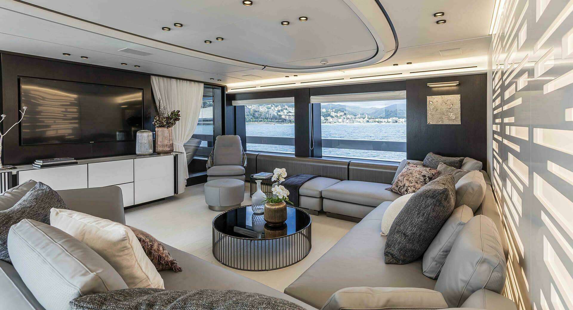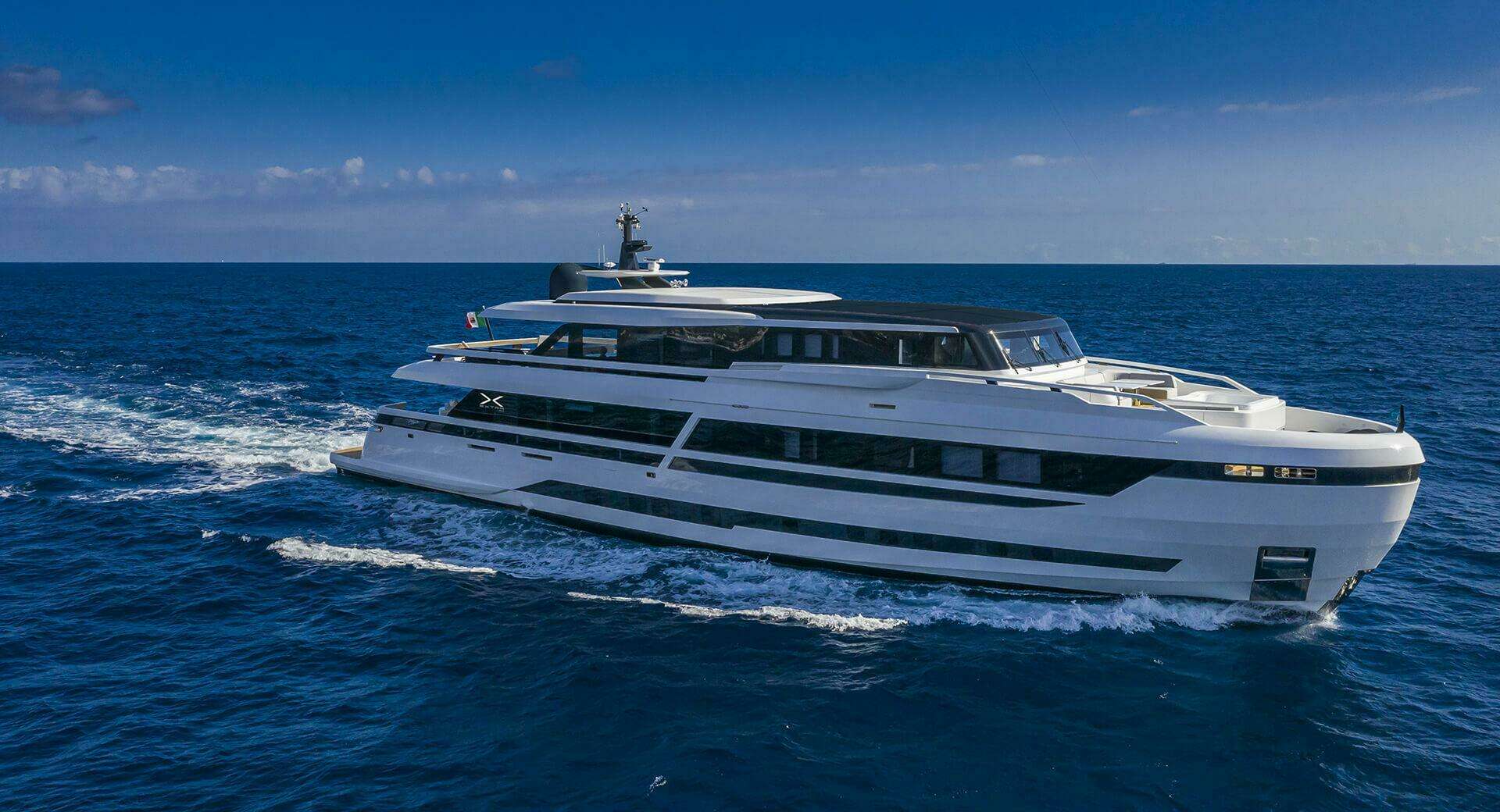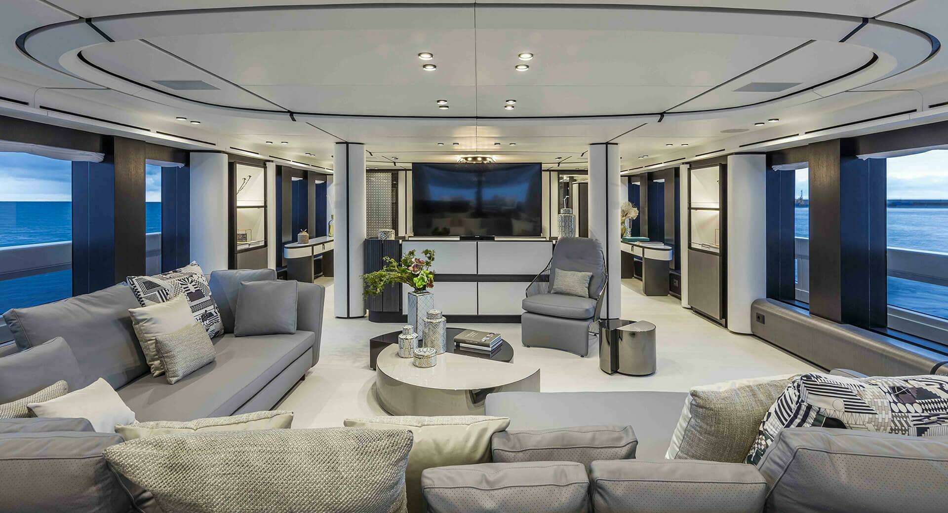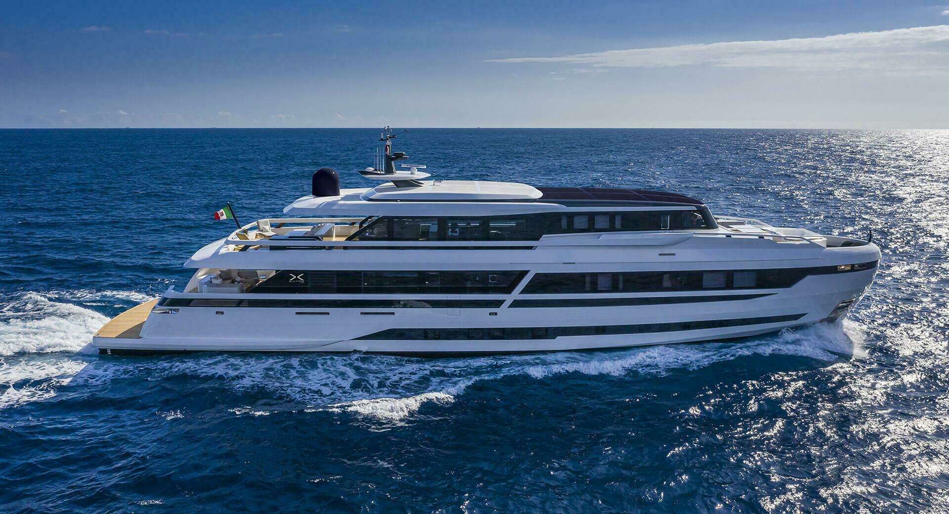 Studio Rogantin and Palumbo Superyachts, it combines spacious indoor and outdoor areas with a practical layout for comfort at sea and at anchor.