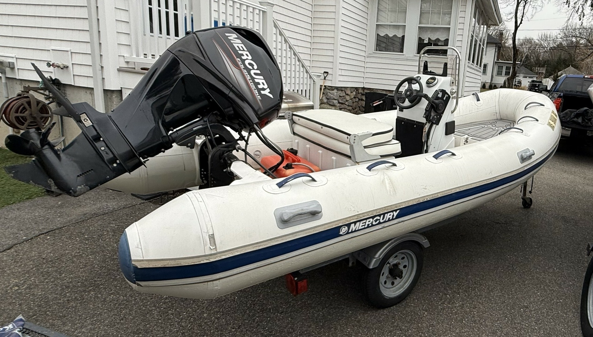 2016 13' Quicksilver HBI powered by a 40 HP Mercury 4 stroke outboard with low 225 hours. Professionally maintained annually by pro tech. High-lighted options include Clarion Stereo, Compass, Winter Cover, Trailer. Tubes have been cleaned and treated with 303 conditioner twice a year. Seller says "Sell it new RIB on the way"