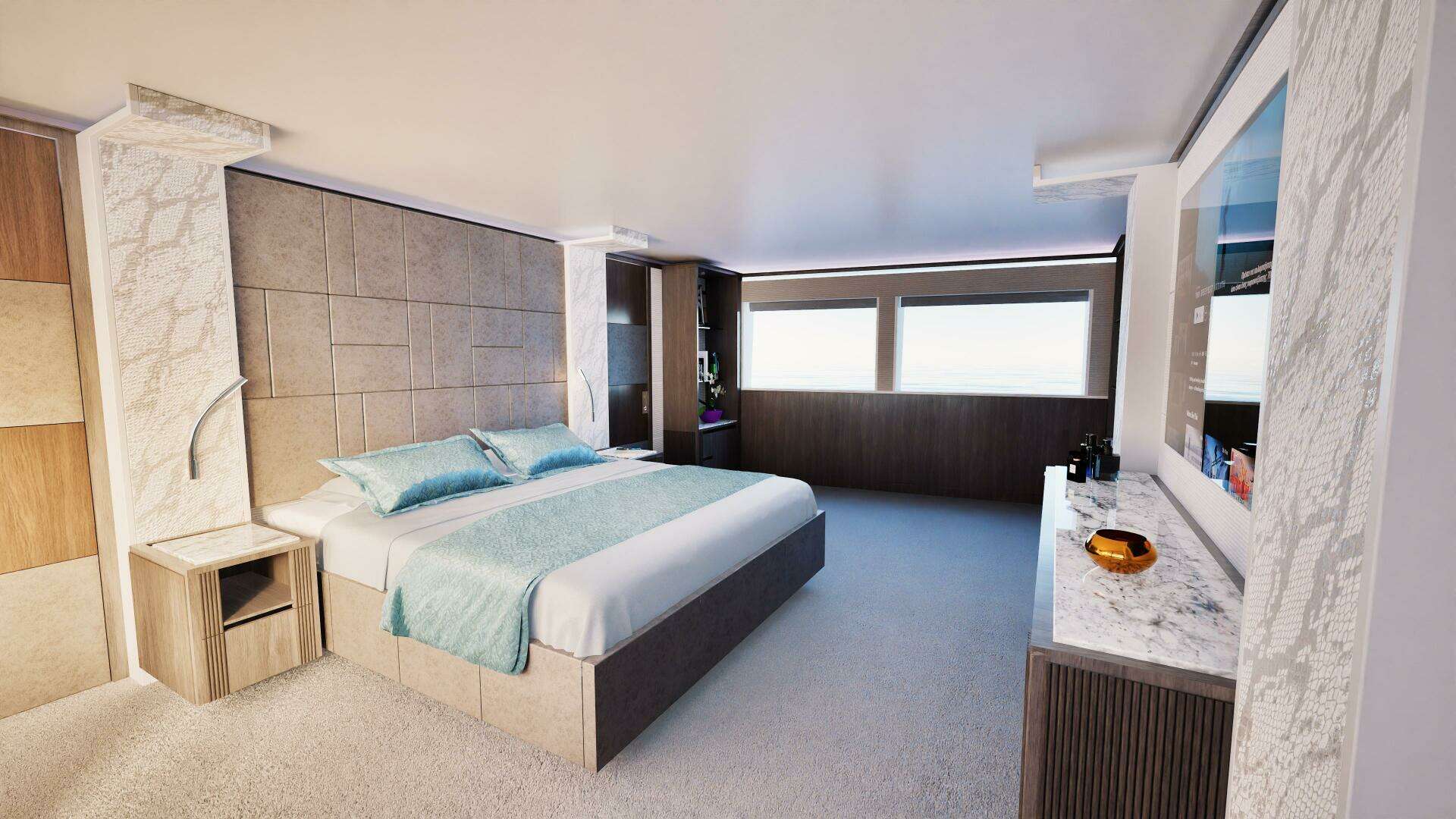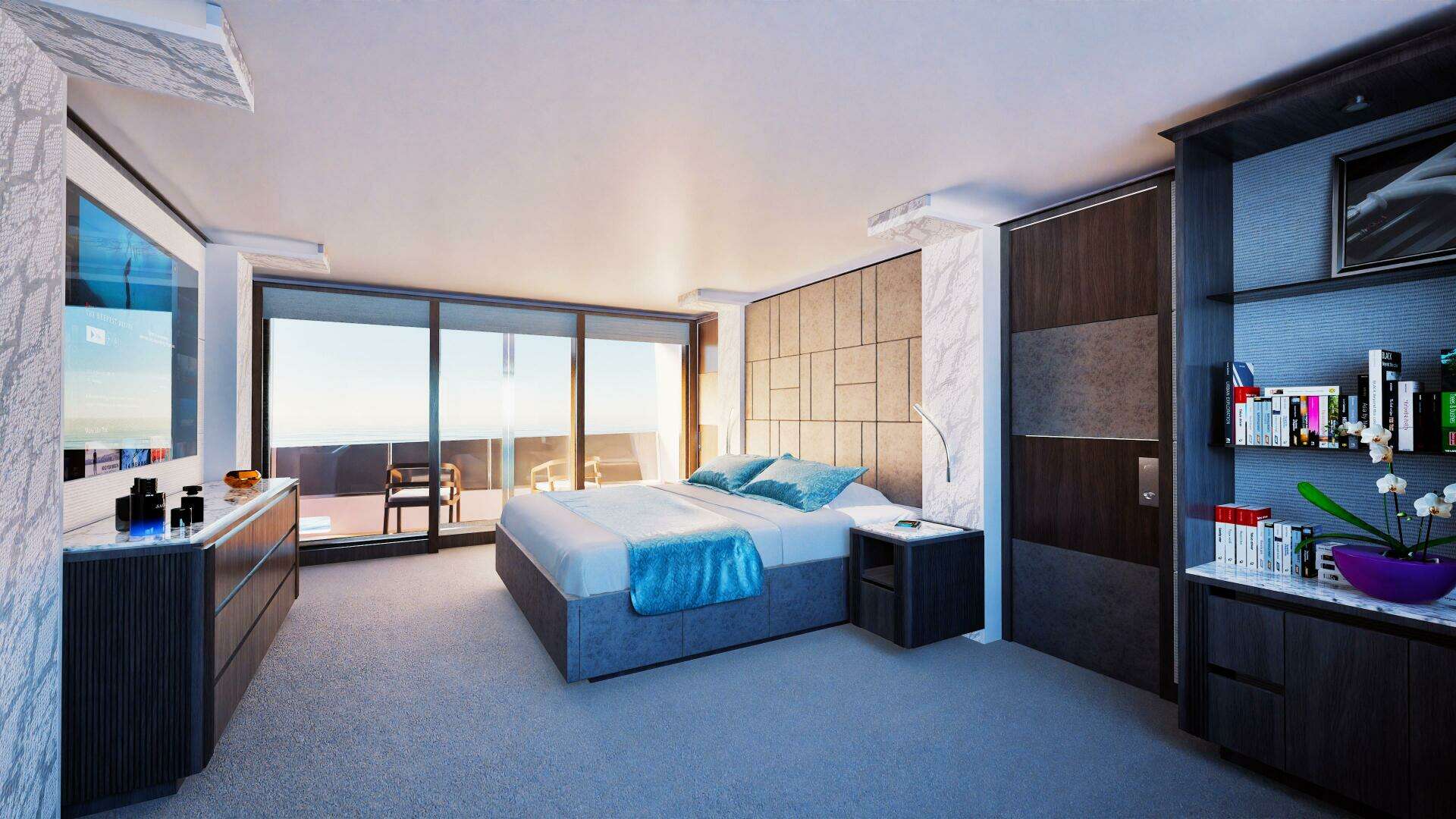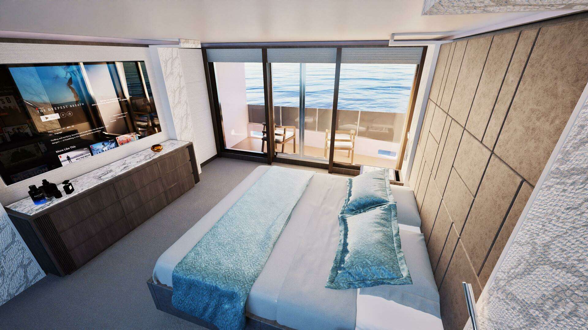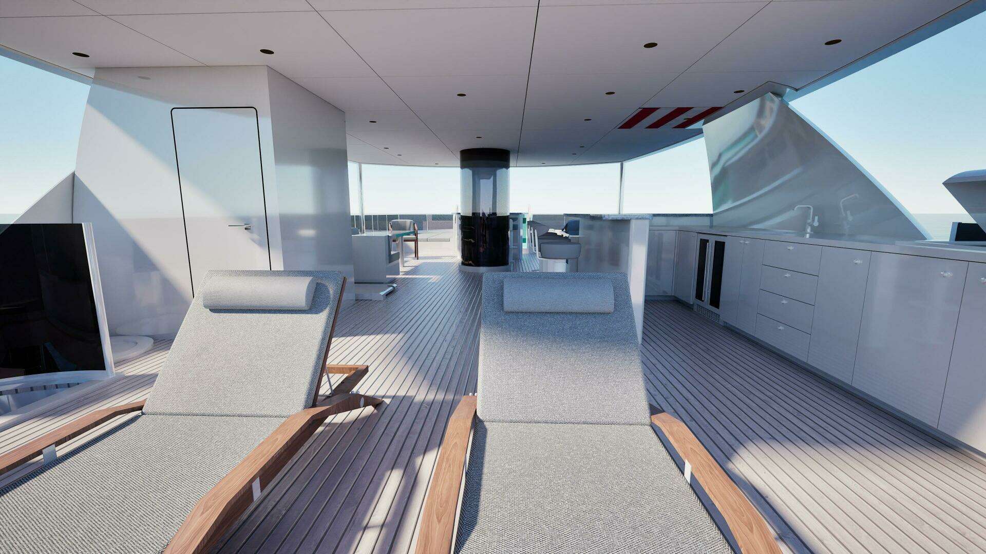 Designed for extended time onboard, the 40M includes a full beach club with proper headroom, multiple entertainment areas across all decks, large outdoor dining zones, and private relaxation spaces for guests.