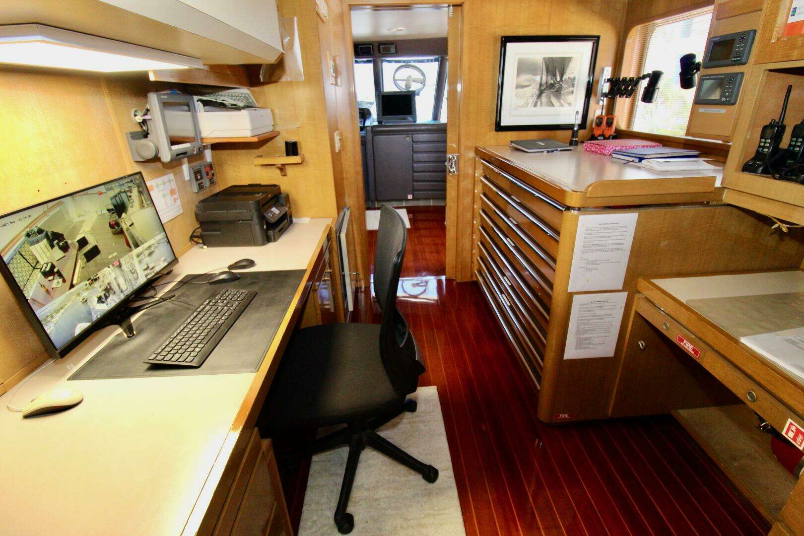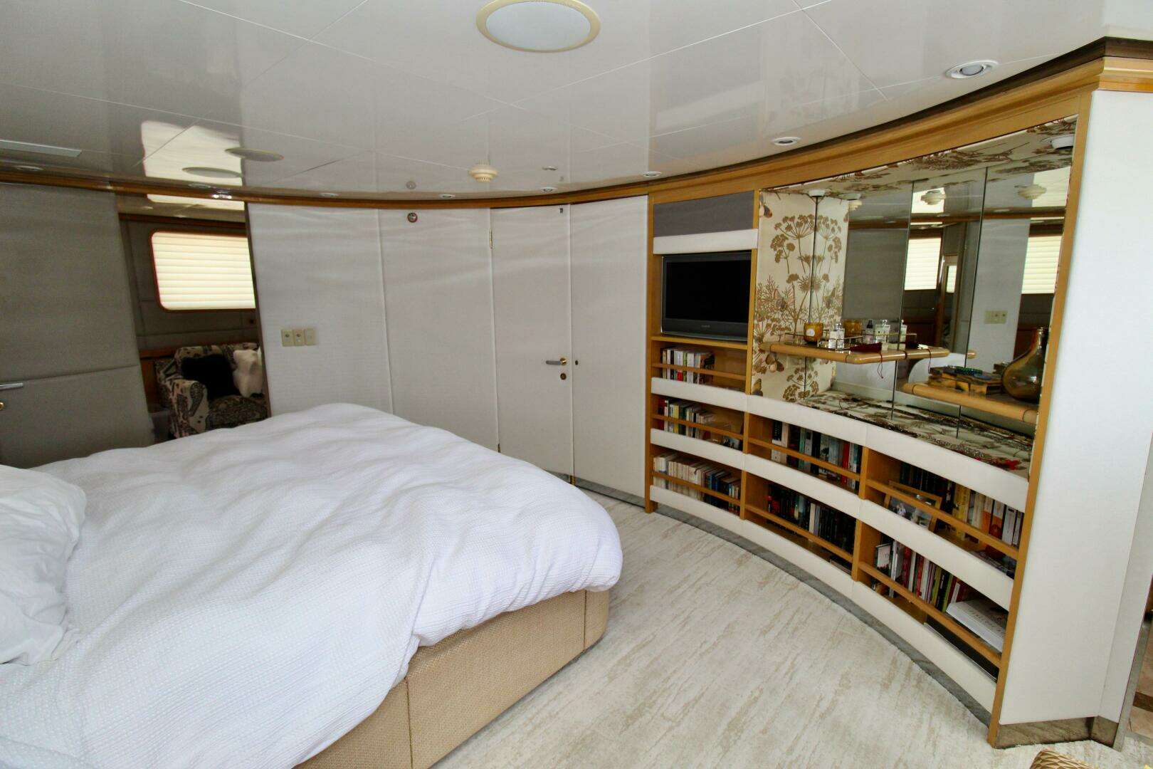 The captain’s cabin is located on the bridge deck, providing convenient access to the helm and operational areas.