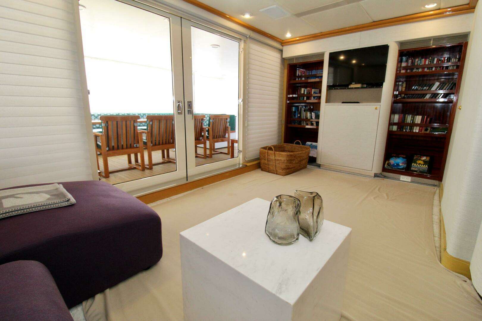 The main salon is exceptionally spacious and open in design, seamlessly integrating with the dining salon to create one expansive entertaining area.