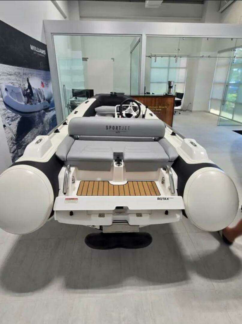 Showroom Condition Williams 435 SportJet with Upgraded 130 HP Engine -Only 15 Hours -Trailer included -Garage Kept and like new condition -Carbon Black Tubes -Upgraded Upholstery -Teak Footwells and Platform -Fusion Music Passage -LED Deck Lights -Intelligent Neutral Reverse Bucket -Digital Depth