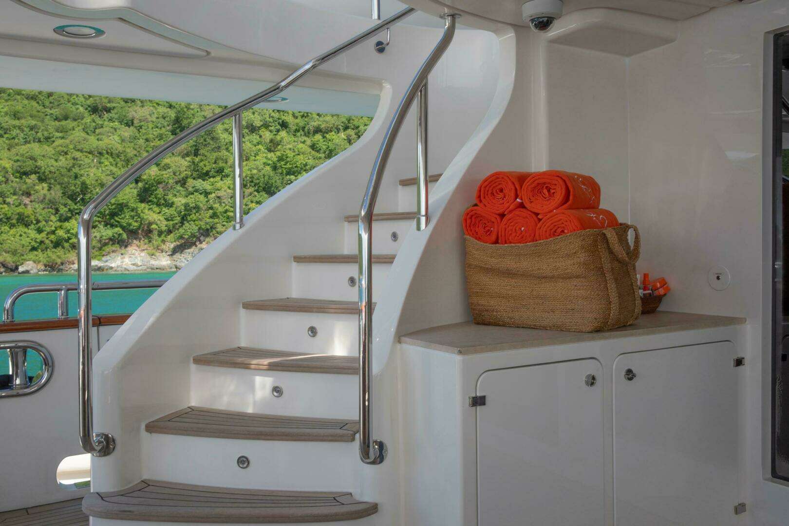Repainting of forward areas, including the owner’s stateroom, white and black sections, non-slip