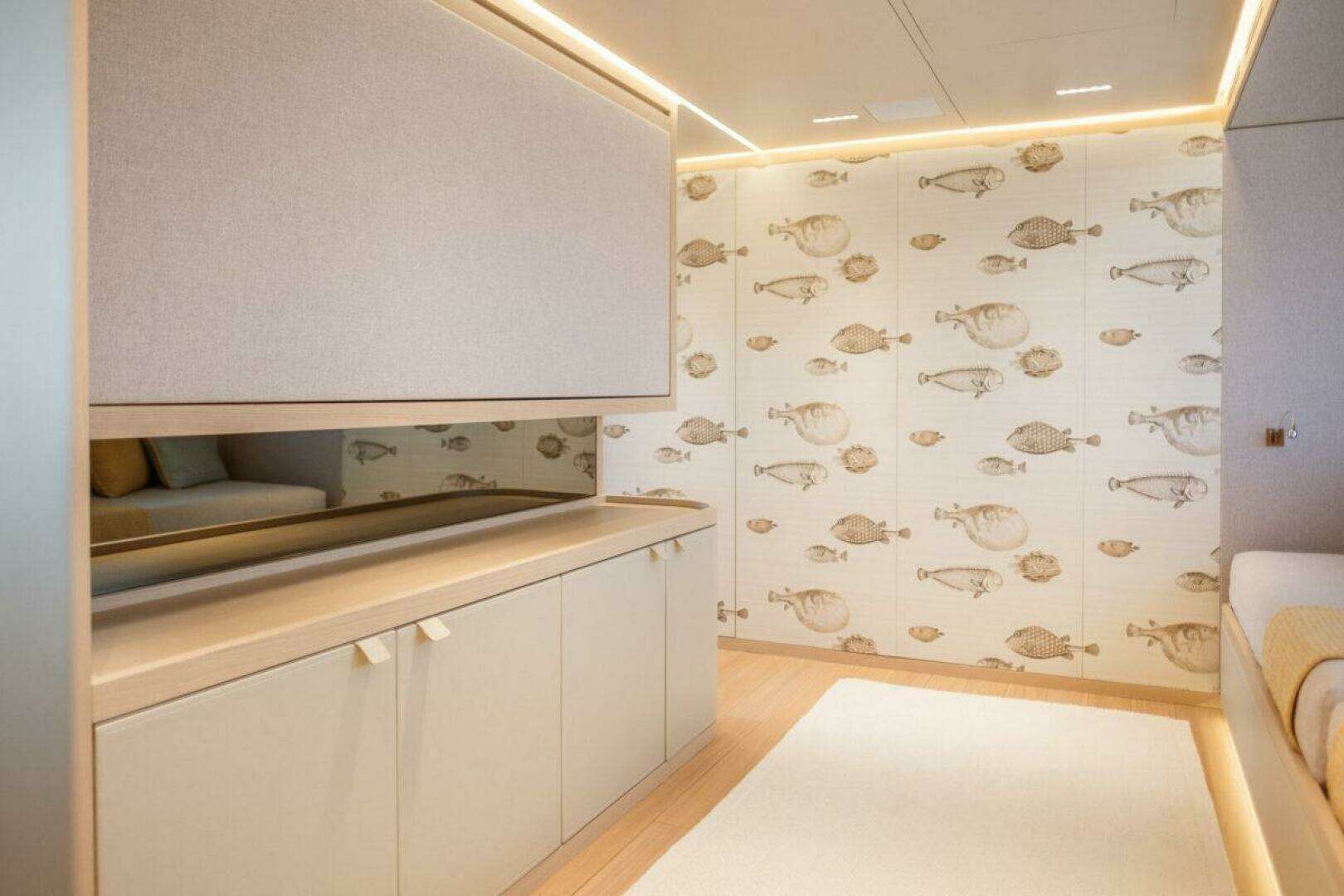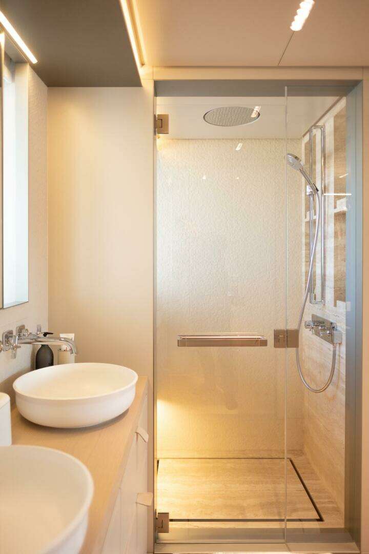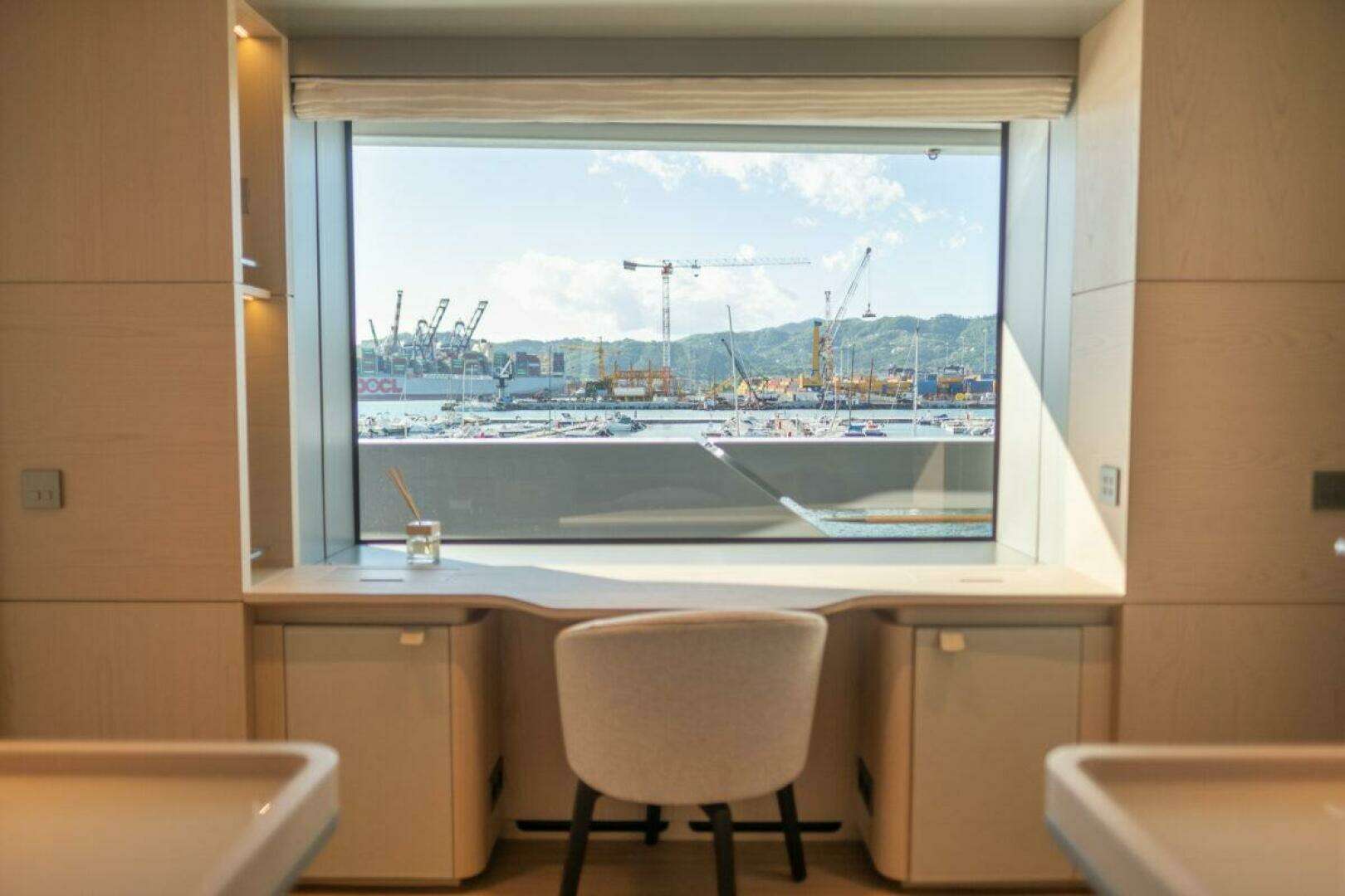 Guests’ staterooms on Lower Deck: 2 VIP staterooms and 2 Twin staterooms, all with ensuite. Port side guest stateroom is equipped with a Pullman bed. Starboard side guest stateroom is equipped with a sliding bed system to convert into a double bed. Each stateroom is equipped with Heon/Denon Audio System.