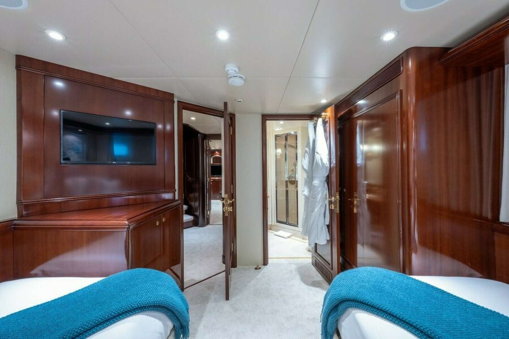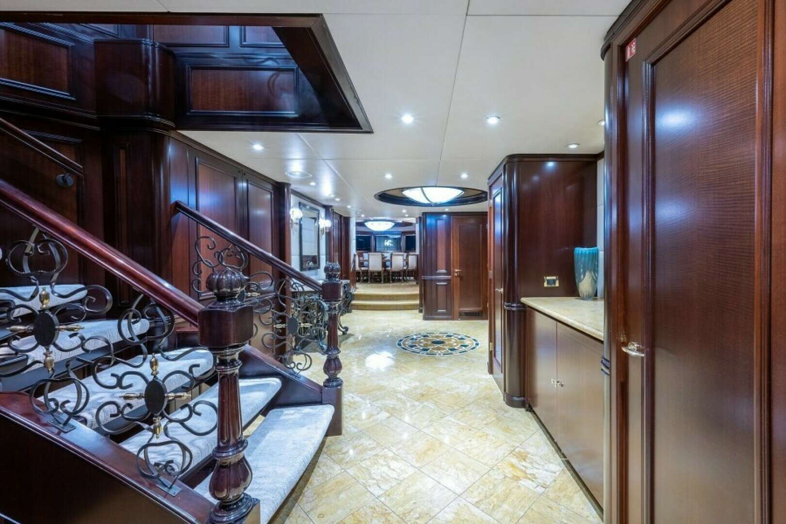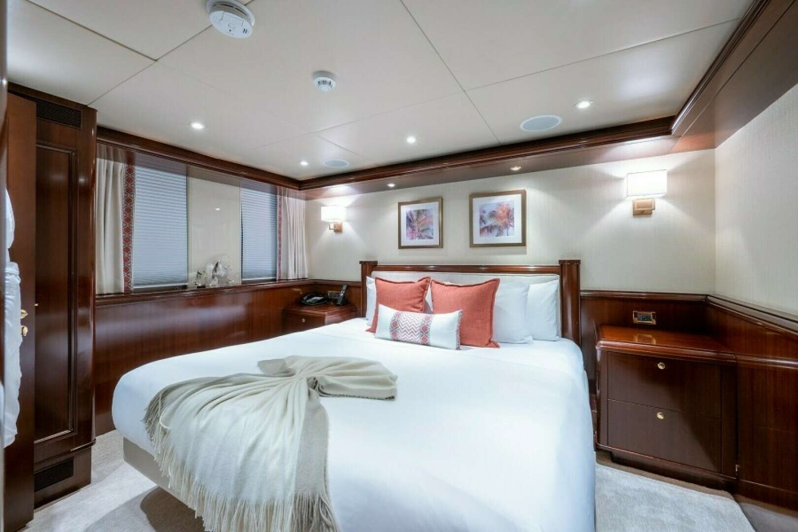 STARSHIP has been carefully maintained since new by several prominent yachting families. Accommodations include 5 staterooms comfortably berthing 12 guests and 7 heads including a day head on the main deck and bridge deck. In 2003/2004, she had an $8m refit including new interior furnishings, full paint job, and 8’ sundeck extension, and new 3512B Caterpillar engines were installed (2003). In 2006, new Quantum Marine Zero Speed stabilizers were installed. In 2015, a $2m refit was done including full paint and interior soft goods for the main salon. Her refit in 2020 featured a skylounge remodel, bottom paint, 2 x new 10-ton chillers installed, and many more. Her 2025 refit included having full zero-time engine rebuilds down to the crank including all updates, $1m in parts and labor. She cruises at 11 – 13 knots with a maximum of 17 knots and her KaMeWa waterjet propulsion gives her a very smooth ride with a 7’ (2.1 meter) draft. STARSHIP is ready to go cruising with her new owners.