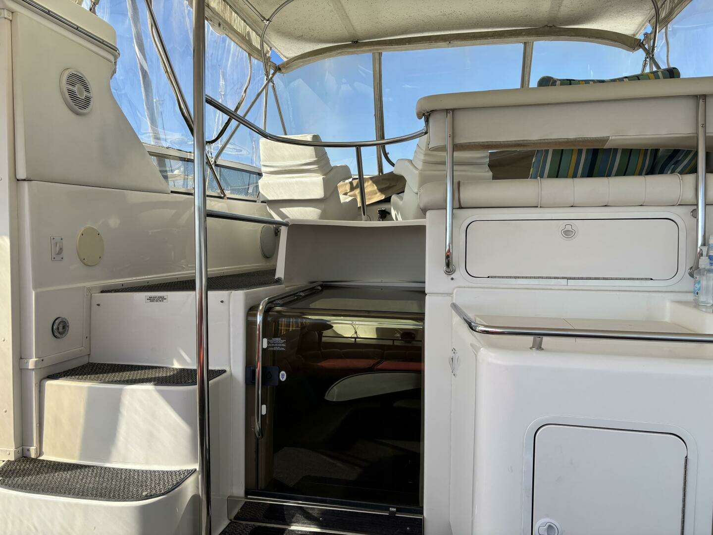 - Aft deck with hardtop, wet bar, and Isinglass enclosure — great for entertaining