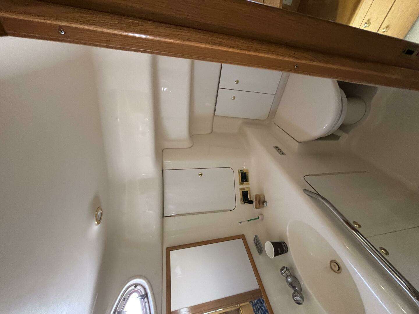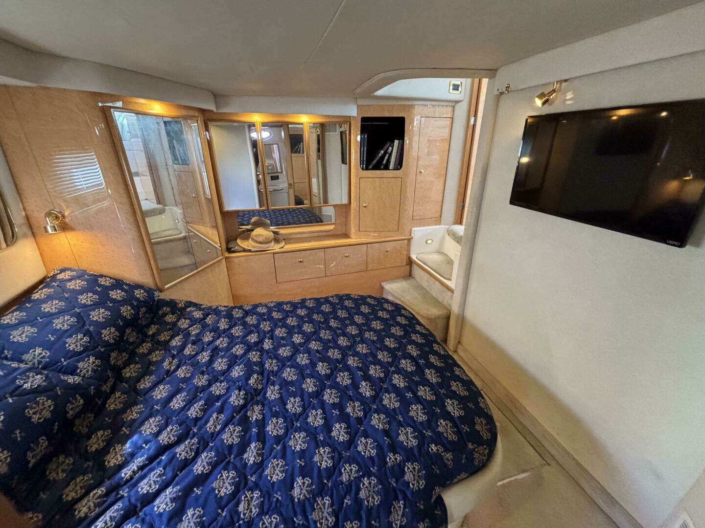 - Spacious aft master stateroom with centerline berth and en-suite head/shower