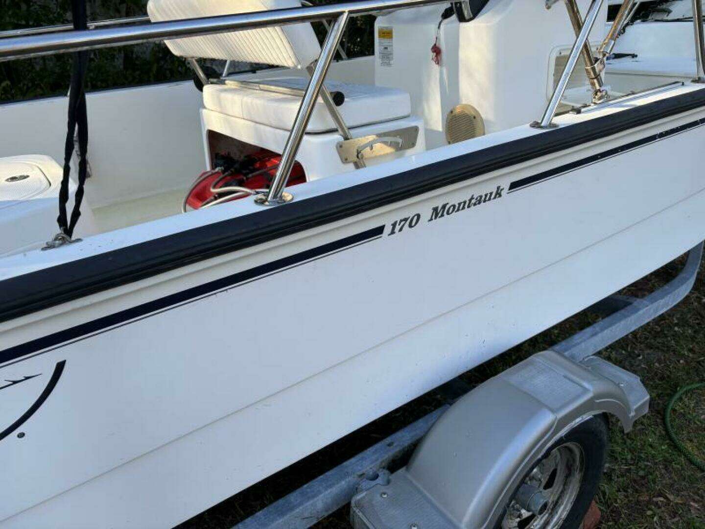 Take a closer look at this lightly used and well maintained 2013 Boston Whaler 170 Montauk that includes a galvanized swing tongue factory trailer allowing convenient and safe storage in a standard 20' garage!