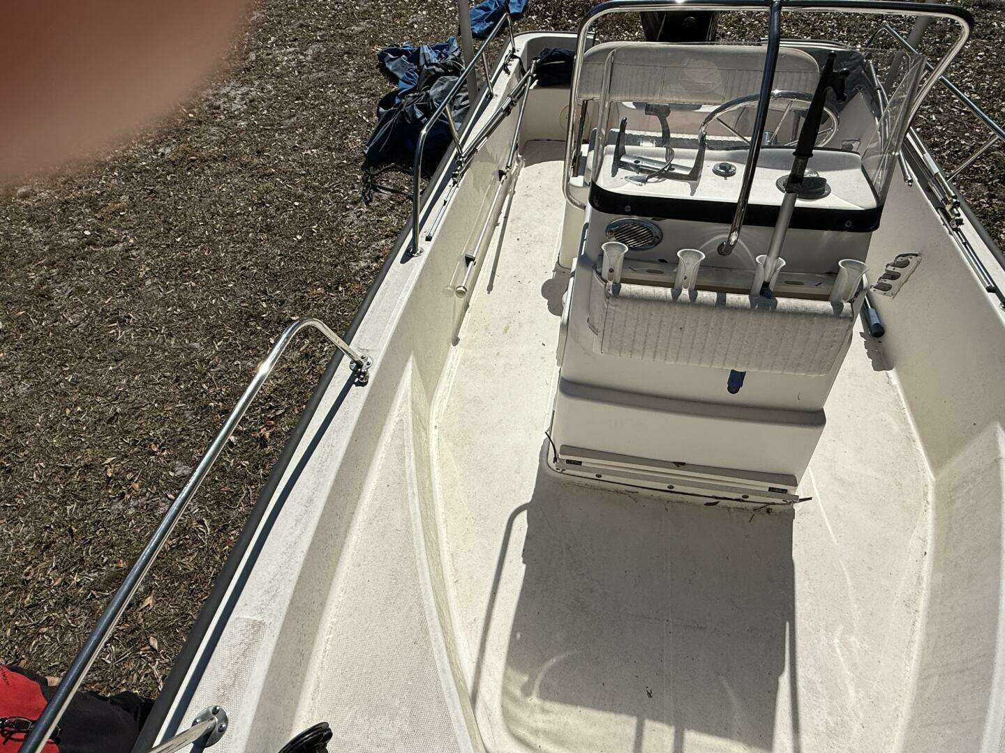 ❖ Battery box with hold-down strap in console ❖ Bilge pump with float switch