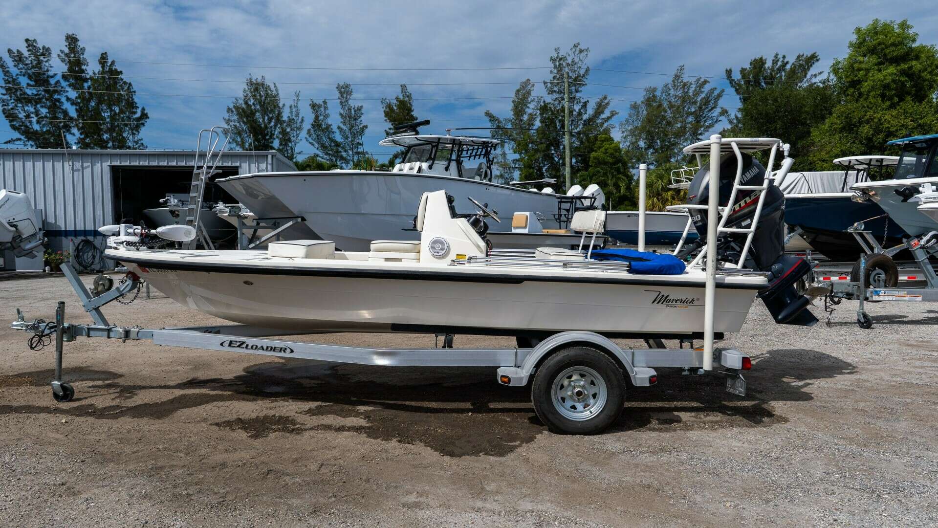 2022 Maverick 17 HPX-V Mirage – Yamaha VMAX 90HP, Minn Kota trolling motor, Garmin 7" MFD, Wet Sounds audio, and custom poling platform. Floats in under 6” of water with trim tabs, bimini, and full cover. Precision shallow-water skiff built for serious inshore anglers.