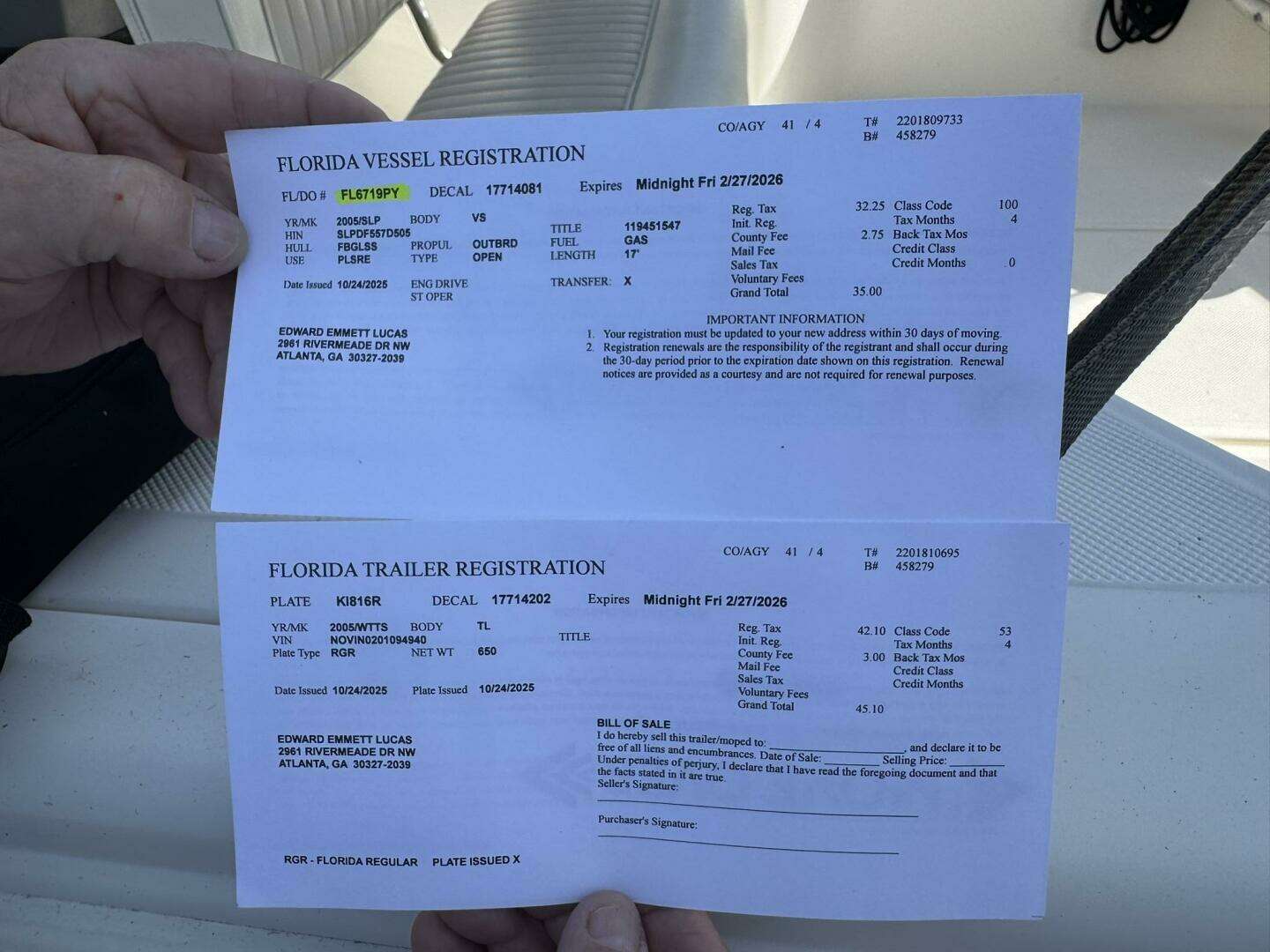 This vessel and trailer have been recently serviced and kept well taken care of! The engine recently had an oil and filter change, new spark plugs, new fuel pump, changed fuel filters, lower unit oil changed, and greased all engine ports. The trailer wheel bearings have been freshly packed and are road ready! All dock lines, 3 boat fenders, boat cover, Yamaha shop manual, and boat cushions are also included.
