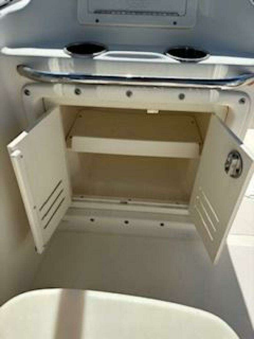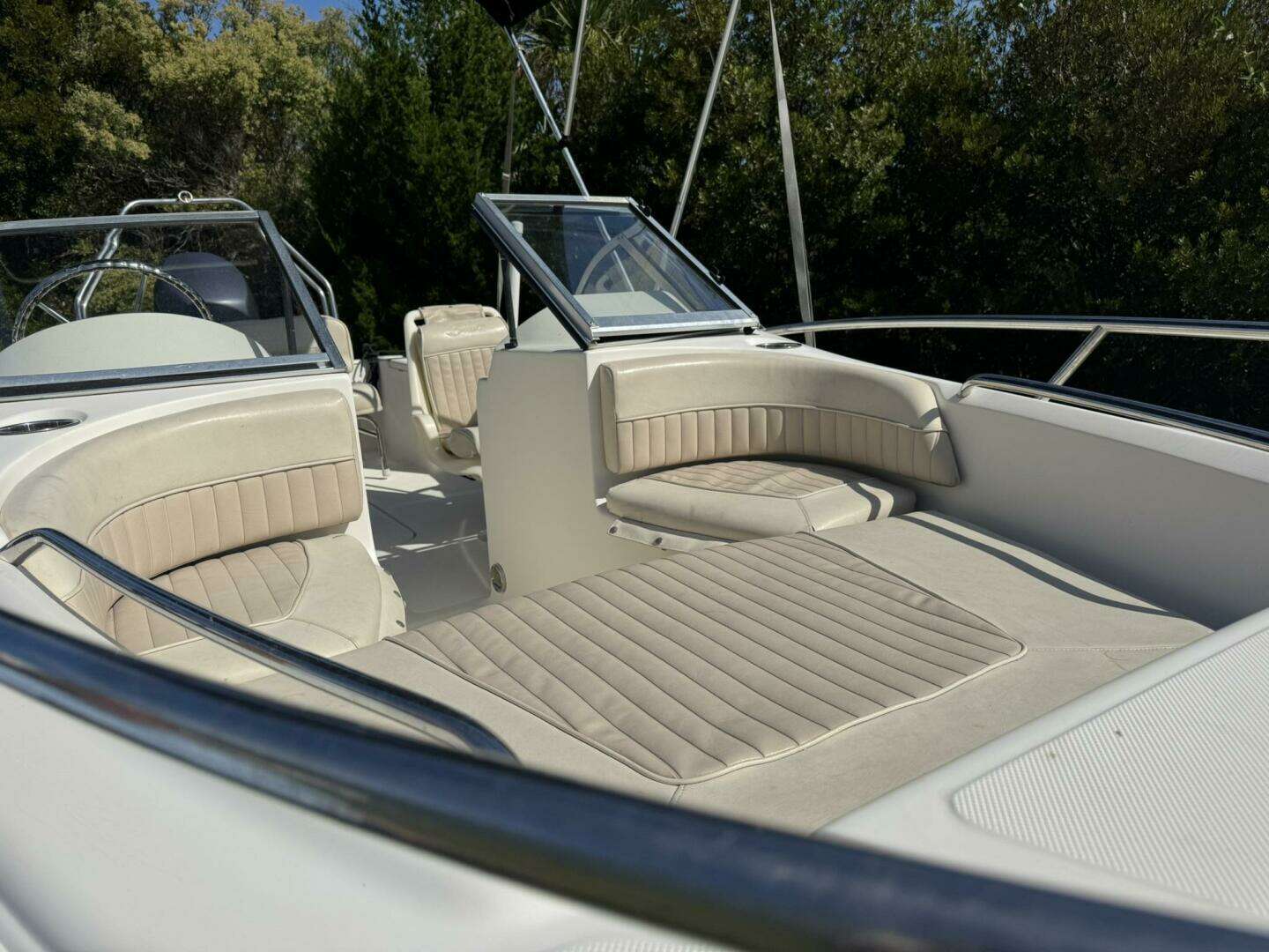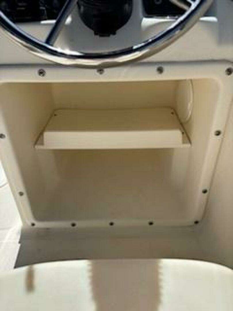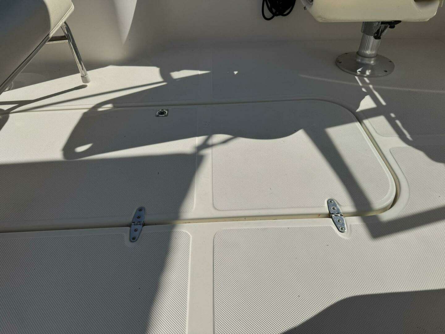 Anchor up at the best fishing hole located by your fishfinder/depthfinder/GPS with the Danforth anchor with chain and rope located in the anchor locker. You can keep your live bait ready in the on-board bait well! Pop the Bimini top for some shade and reel-ax! The rear bench seat is removable for an option of more room. There are four large lockable storage lockers on board ready to be packed for a day's full of fun! The built in battery charger and fuel water separator will prevent you from unwanted accidents.